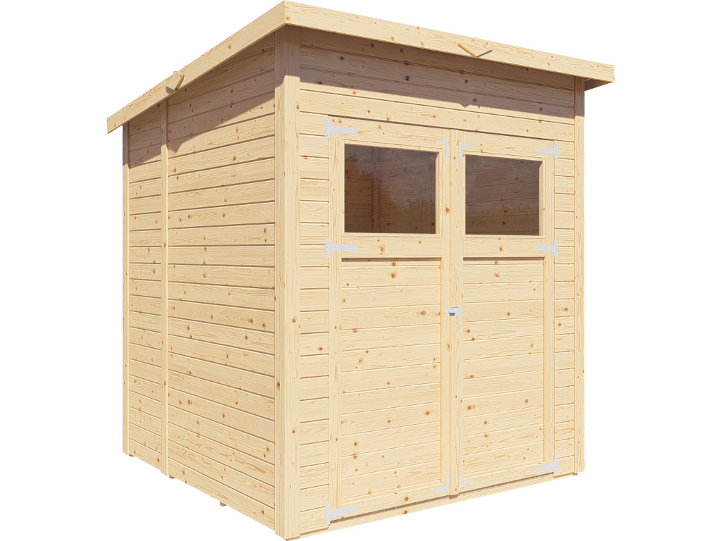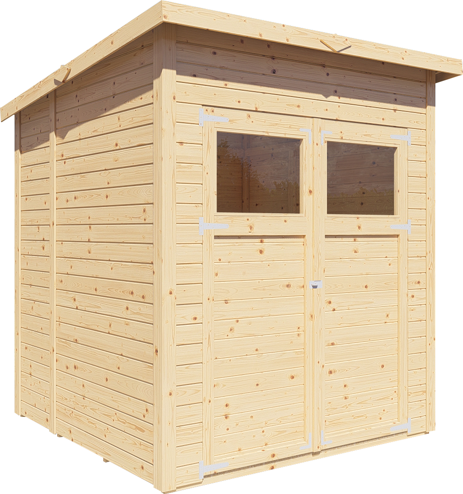 Het moderne lessenaarsdak van massief hout met mes-en-groefverbinding geeft dit tuinhuis een strakke, elegante uitstraling. Door de enkele, licht hellende dakplaat blijft de bruikbare binnenruimte vrijwel volledig behouden en gaat er weinig nuttige ruimte verloren. De helling van het lessenaarsdak zorgt bovendien voor een goede afvoer van regenwater en er is slechts één dakgoot nodig.