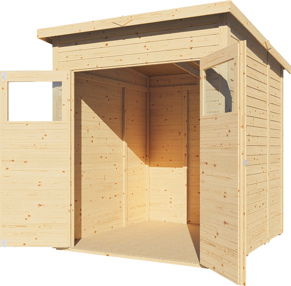 Het onbehandelde hout zorgt voor een natuurlijke, tijdloze uitstraling. Bovendien kun je dankzij het onbewerkte oppervlak de buitenkant van dit tuinhuis volledig naar eigen smaak afwerken.
