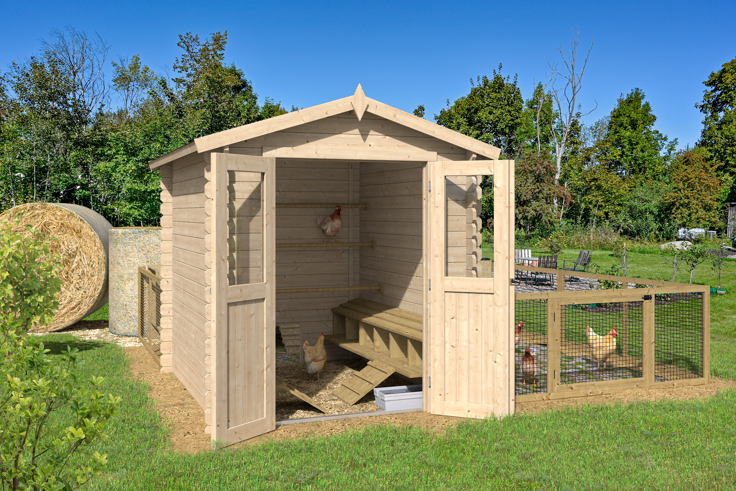 Als klassieker onder de tuinhuizen heeft deze blokhut een zeer robuuste constructie met een natuurlijke uitstraling. De constructie is gebaseerd op de traditionele blokhut. De wanden bestaan uit geprefabriceerde houten balken die dankzij een mes-en-groefverbinding eenvoudig op elkaar worden gestapeld. Zo is een snelle en eenvoudige montage én demontage mogelijk. Aan de kopse kanten zorgen de kenmerkende chaletverbindingen niet alleen voor een mooi aanzicht, maar houden ze de complete constructie stevig samen en maken deze uitstekend bestand tegen wind en weer.