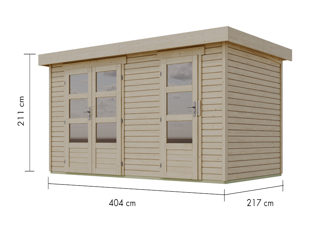 B x D x H: 404 x 217 x 211 cm, funderingsmaat tuinhuis: B x D: 400 x 213 cm, moderne deurvariant met profielcilinderslot