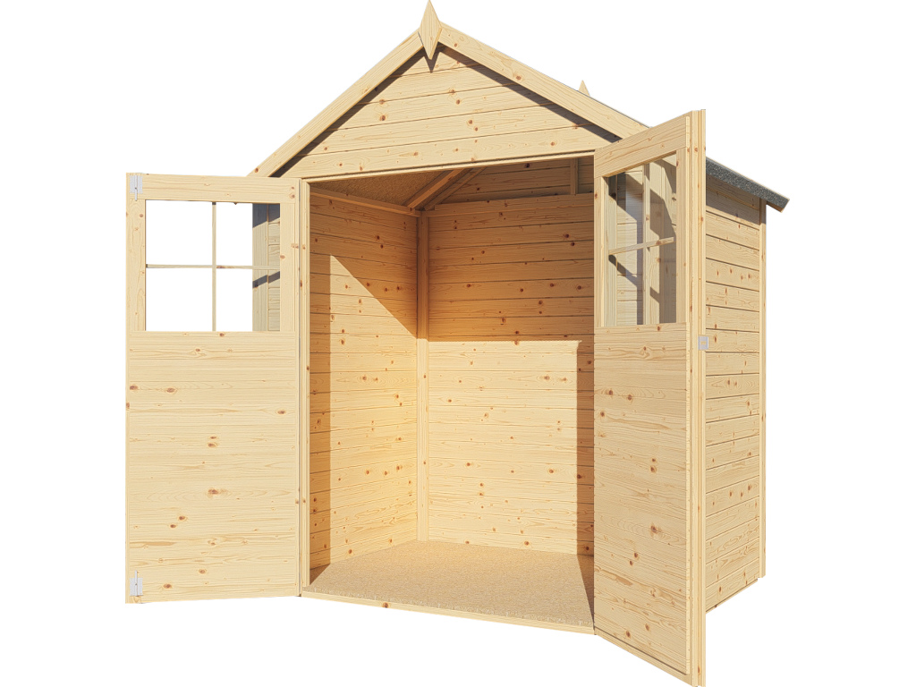 Dit hoogwaardig afgewerkte tuinhuis is gemaakt van geselecteerd vurenhout van eerste kwaliteit. Vuren is bijzonder duurzaam en robuust en zorgt zo voor de noodzakelijke stabiliteit. Daarnaast is deze houtsoort licht van gewicht, gemakkelijk te verwerken en zeer elastisch.