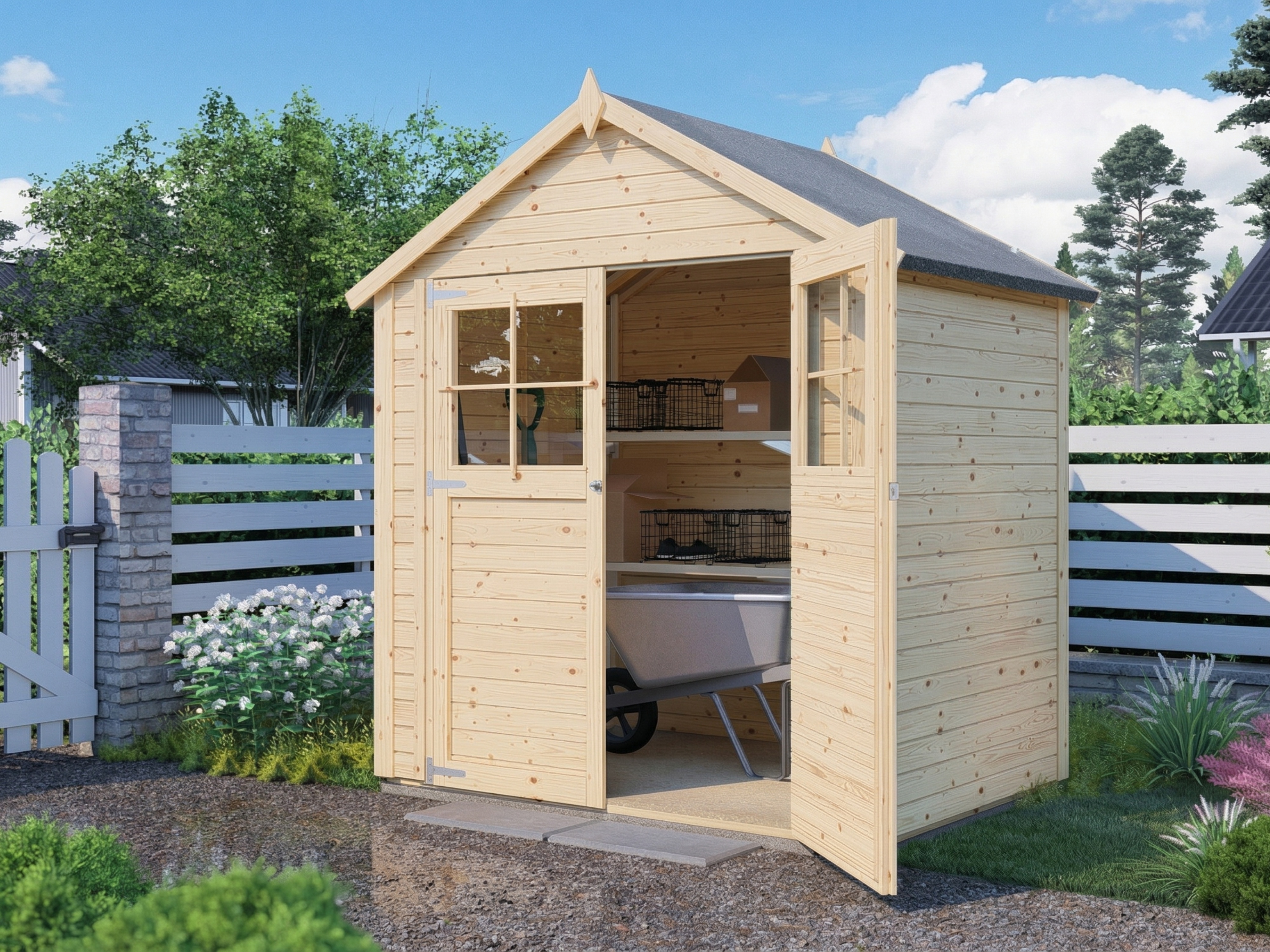 Met een wanddikte van 19 mm is dit tuinhuis ideaal als stalling voor fietsen en als opbergruimte voor tuingereedschap en accessoires. De eenvoudige, snel te monteren constructie is ruim voldoende als overkapping of compacte berging.