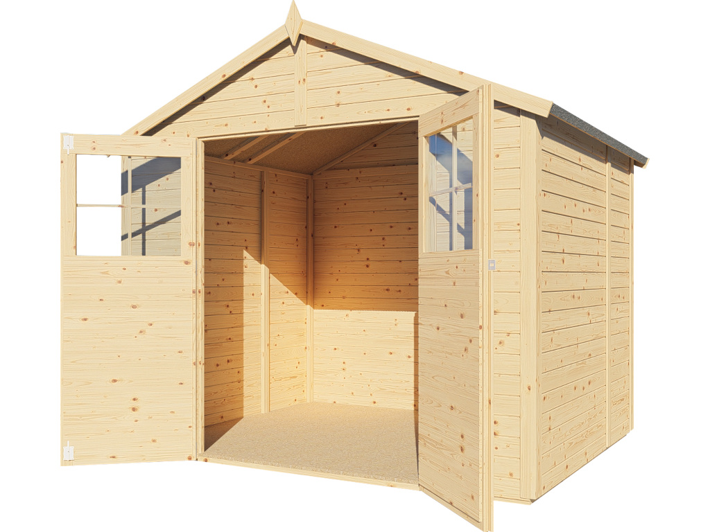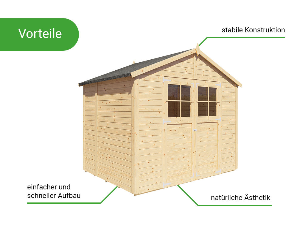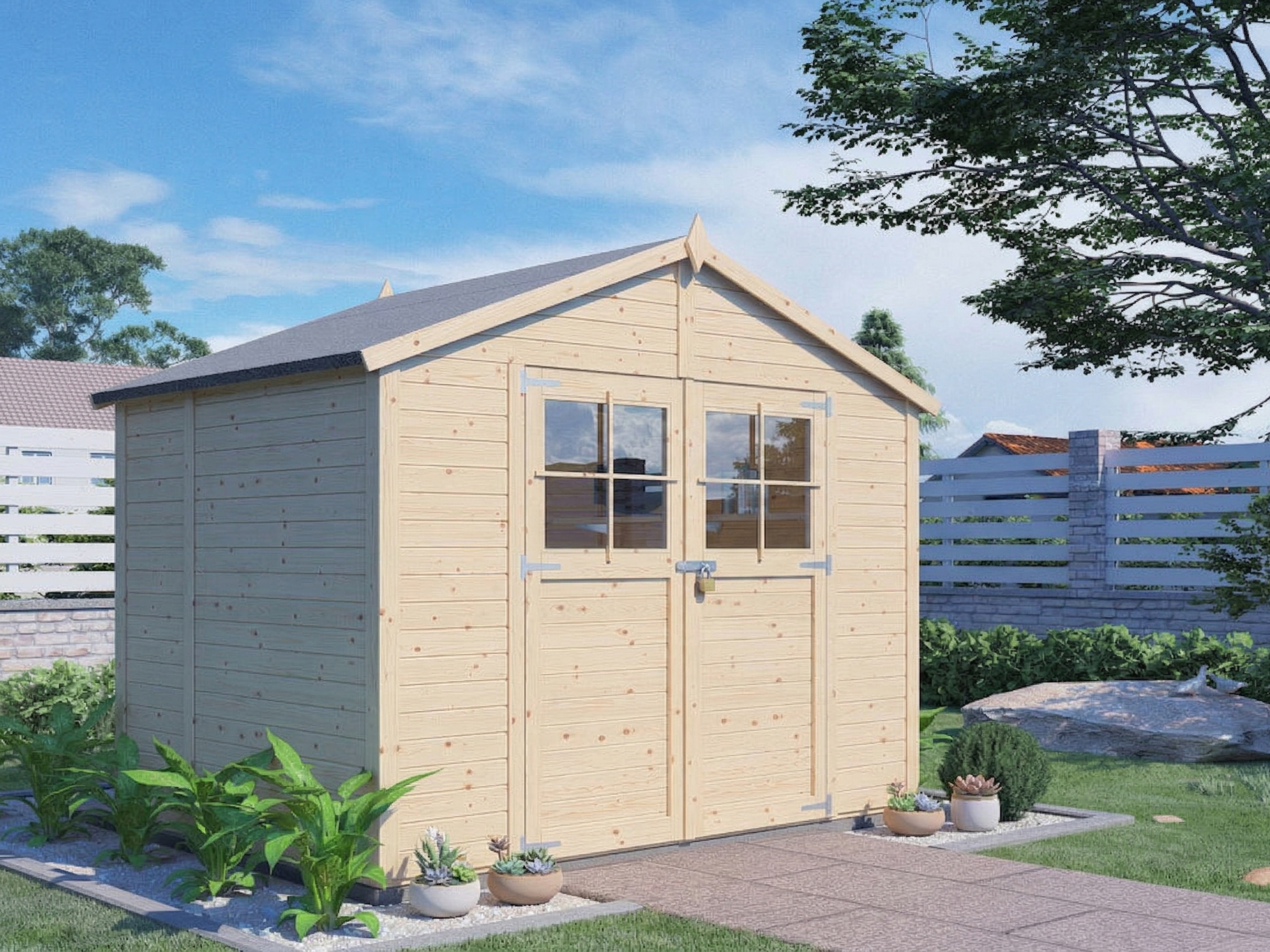 Met een wanddikte van 19 mm is dit tuinhuis ideaal als stalling voor fietsen en als opbergruimte voor tuingereedschap en -accessoires. De lichte, eenvoudige constructie laat zich vlot monteren en is als overdekte berging of opslagruimte ruim voldoende.