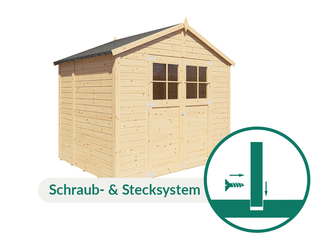 Dankzij de elementbouw is dit tuinhuis bijzonder snel en eenvoudig te monteren. Bij deze bouwmethode bestaan de wanden niet uit losse planken, maar uit voorgemonteerde wandelementen met een houten frame en reeds bevestigde profielhouten delen. Deze elementen worden eenvoudig aan elkaar geschroefd, het geprefabriceerde dakelement wordt geplaatst en je kunt al snel van dit praktische tuinhuis genieten. Deuren en ramen kunnen door het uitwisselen van afzonderlijke wandelementen flexibel worden gepositioneerd, zodat je de indeling naar wens kunt aanpassen.
