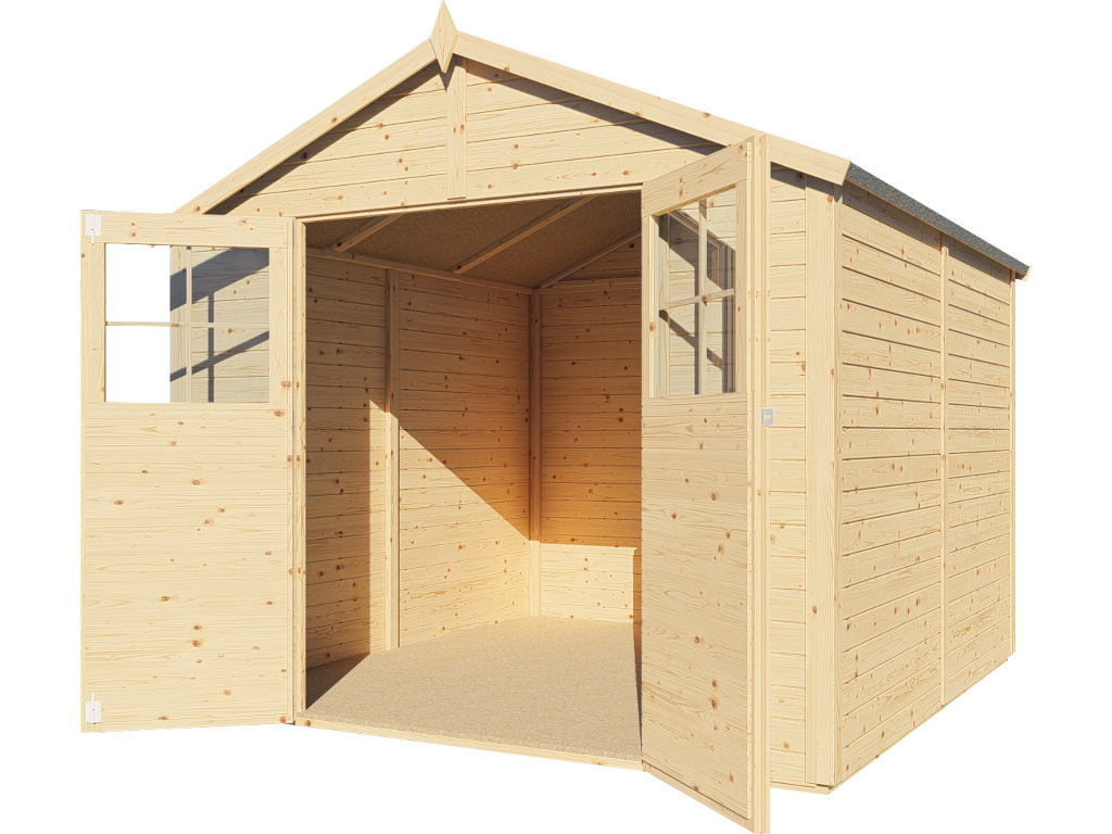 Met een wanddikte van 19 mm is dit tuinhuis ideaal als stallingsplaats voor fietsen, tuingereedschap en toebehoren. Door de eenvoudige montage volstaat deze uitvoering uitstekend als overdekte opslag of handige berging.