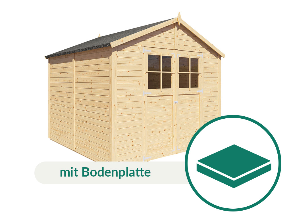 De vloer is inbegrepen. Deze is bijzonder draagkrachtig; het hoogwaardige massieve hout zorgt voor goede statische eigenschappen en extra stabiliteit. Zware tuingereedschappen en machines kunnen dus probleemloos worden geplaatst. De afzonderlijke vloerdelen zijn met het meegeleverde montagemateriaal eenvoudig te monteren.