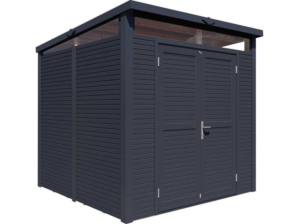 Met een wanddikte van 18 mm is dit tuinhuis ideaal als opslagplek voor fietsen, tuingereedschap en -accessoires. De lichte, eenvoudige uitvoering is perfect als overdekte stalling of praktische berging.