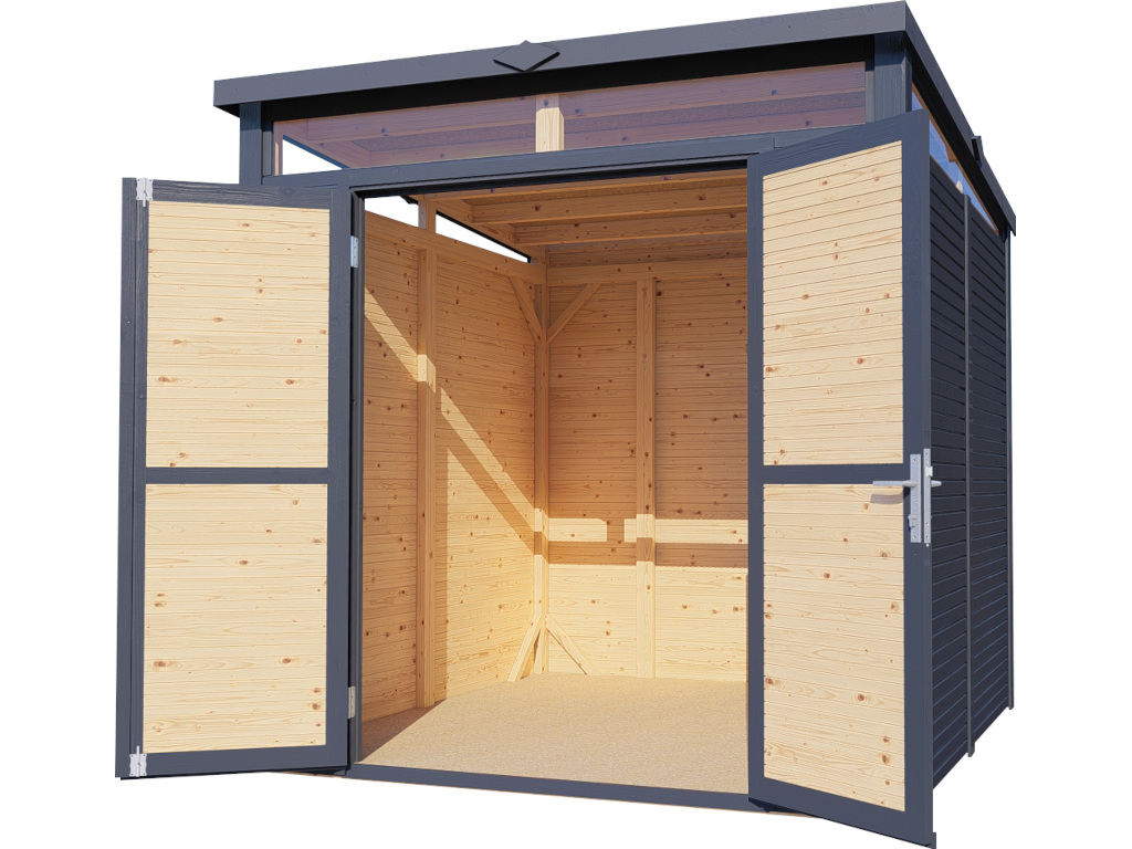 Met een wanddikte van 18 mm is dit tuinhuis ideaal als opslagplek voor fietsen, tuingereedschap en -accessoires. De lichte, eenvoudige uitvoering is perfect als overdekte stalling of praktische berging.