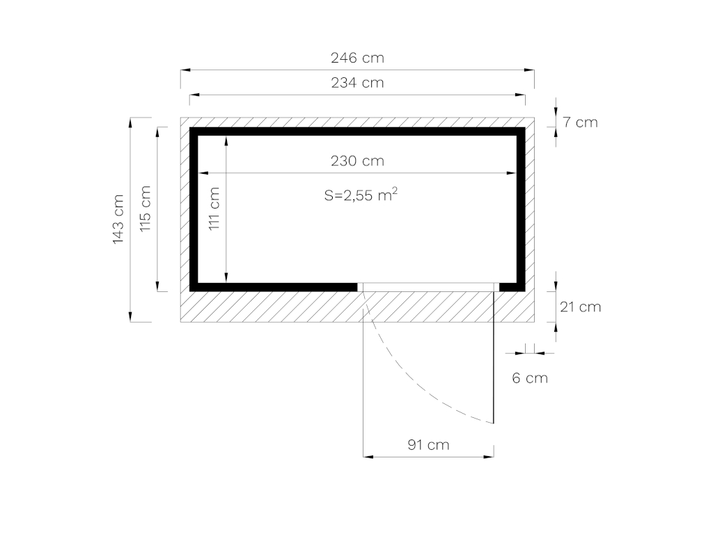 | Inwendige afmeting huis / grootste kamer (B x D cm): | 230 x 111 cm |