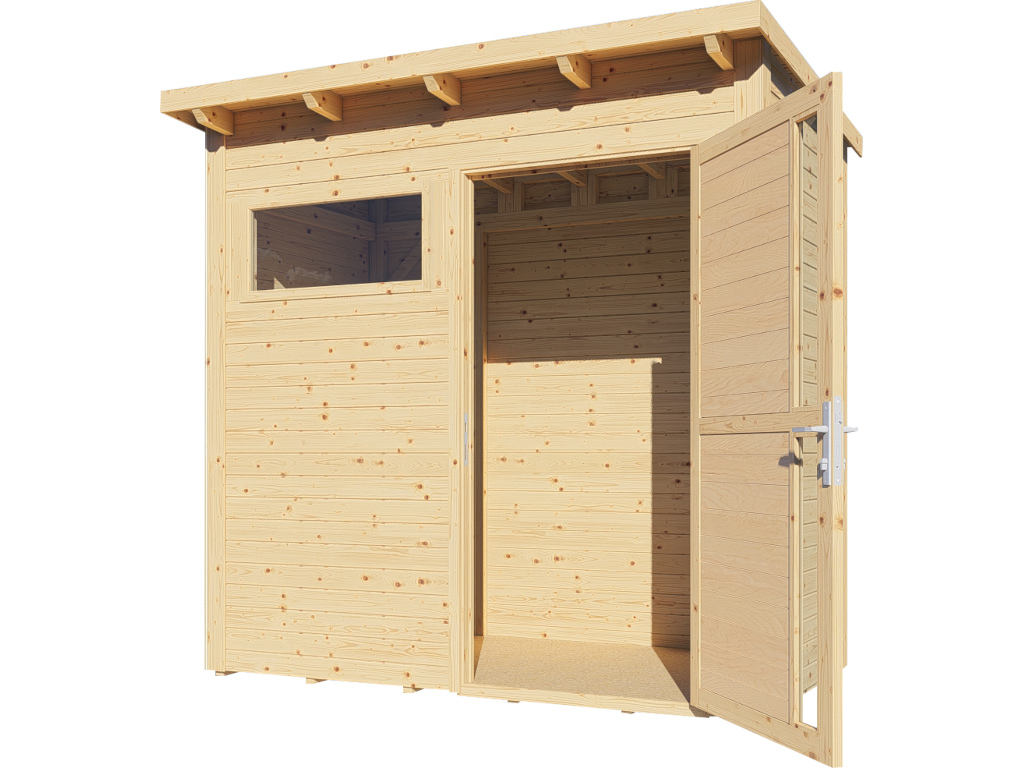 Het onbehandelde hout zorgt voor een natuurlijke, tijdloze uitstraling. Bovendien kun je dankzij het onbewerkte oppervlak de buitenkant van dit tuinhuis volledig naar eigen smaak afwerken.