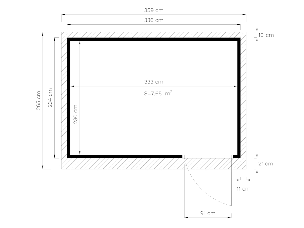 | Inwendige afmeting huis / grootste kamer (B x D cm): | 333 x 230 cm |