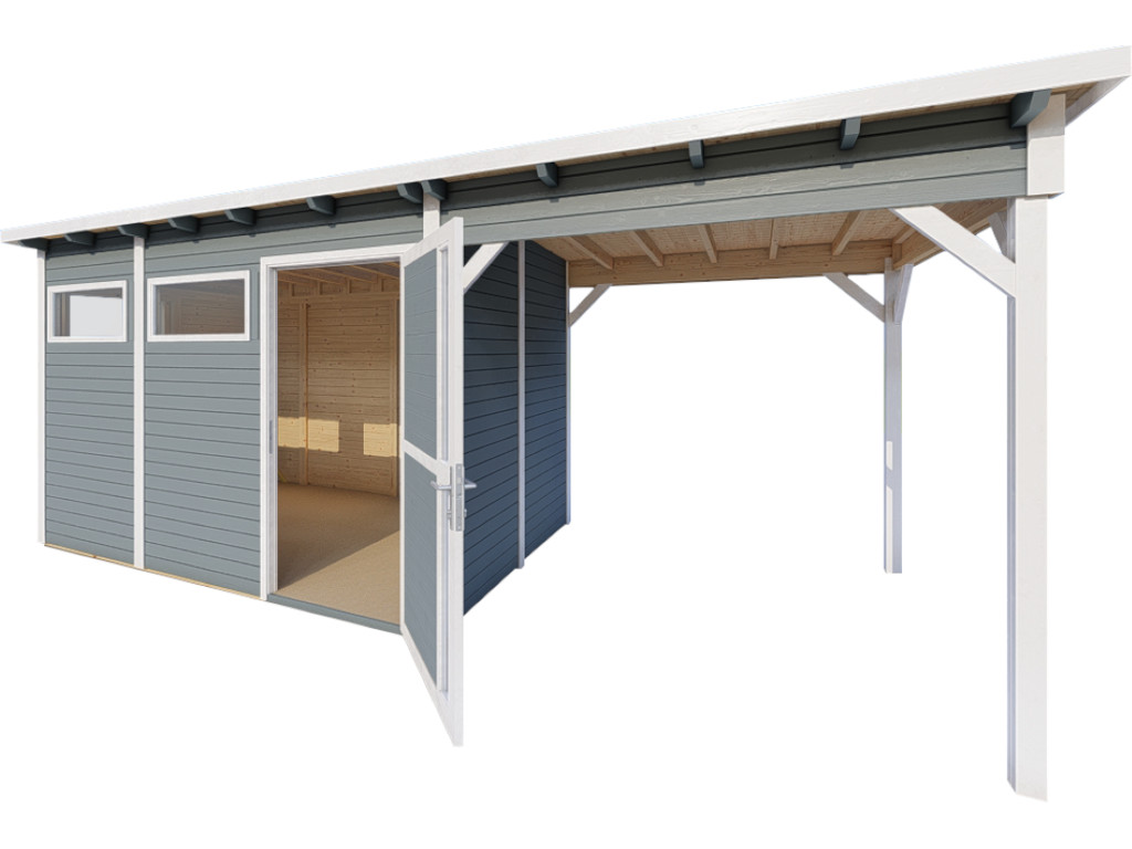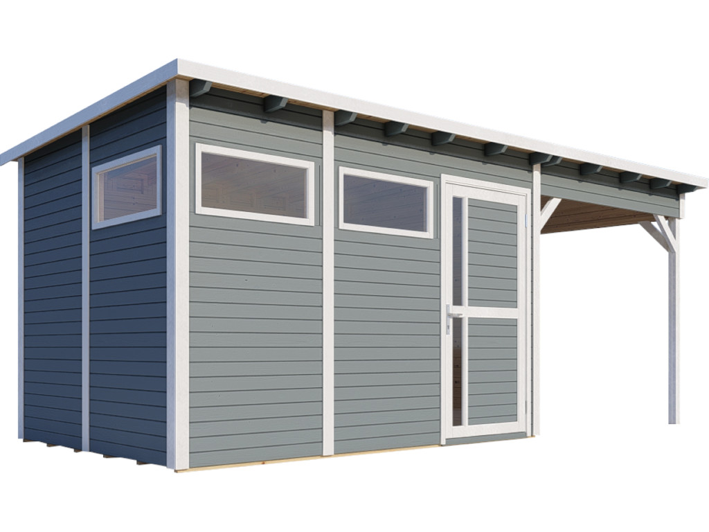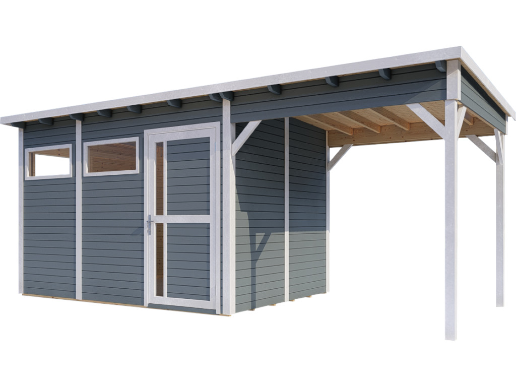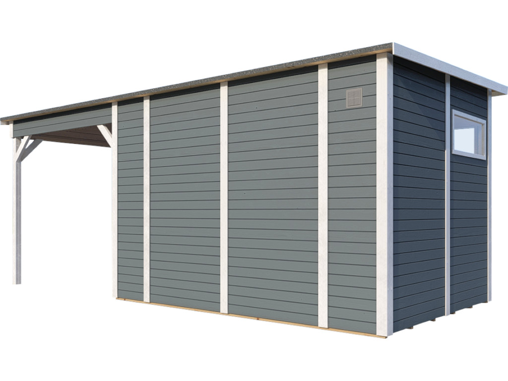 Tuinhuis Punta 3 met aanbouw 19 mm lichtgrijs