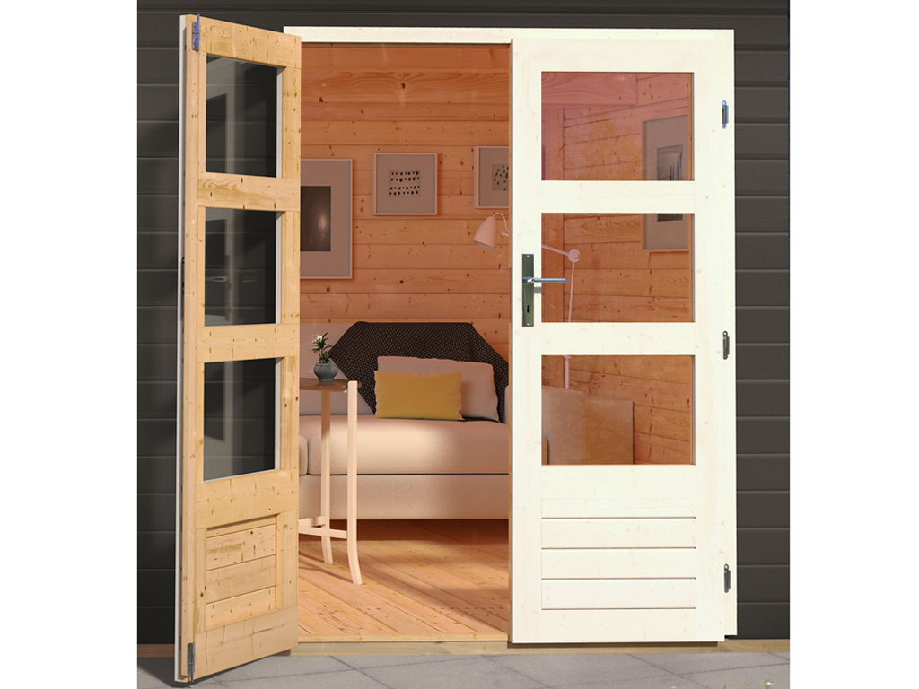 - Het tuinhuis wordt geleverd zonder vloer. Een geschikte vloer (let op de serieaanduiding) vind je in ons assortiment accessoires.