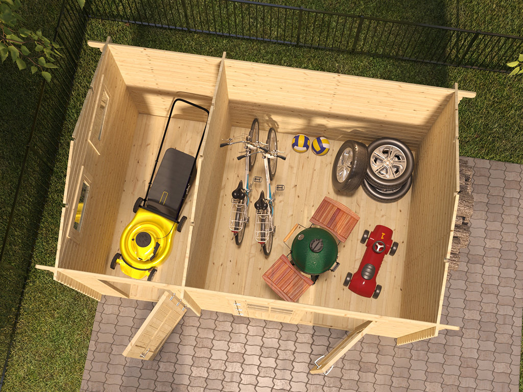 Als een van de klassiekers onder de tuinhuizen blinkt een blokhut uit door een zeer robuuste constructie in combinatie met een natuurlijke, tijdloze uitstraling. Deze bouwmethode is geïnspireerd op de traditionele blokhut en zorgt ervoor dat dit tuinhuis zich met zijn klassieke, ingetogen design harmonieus in elke tuin voegt.