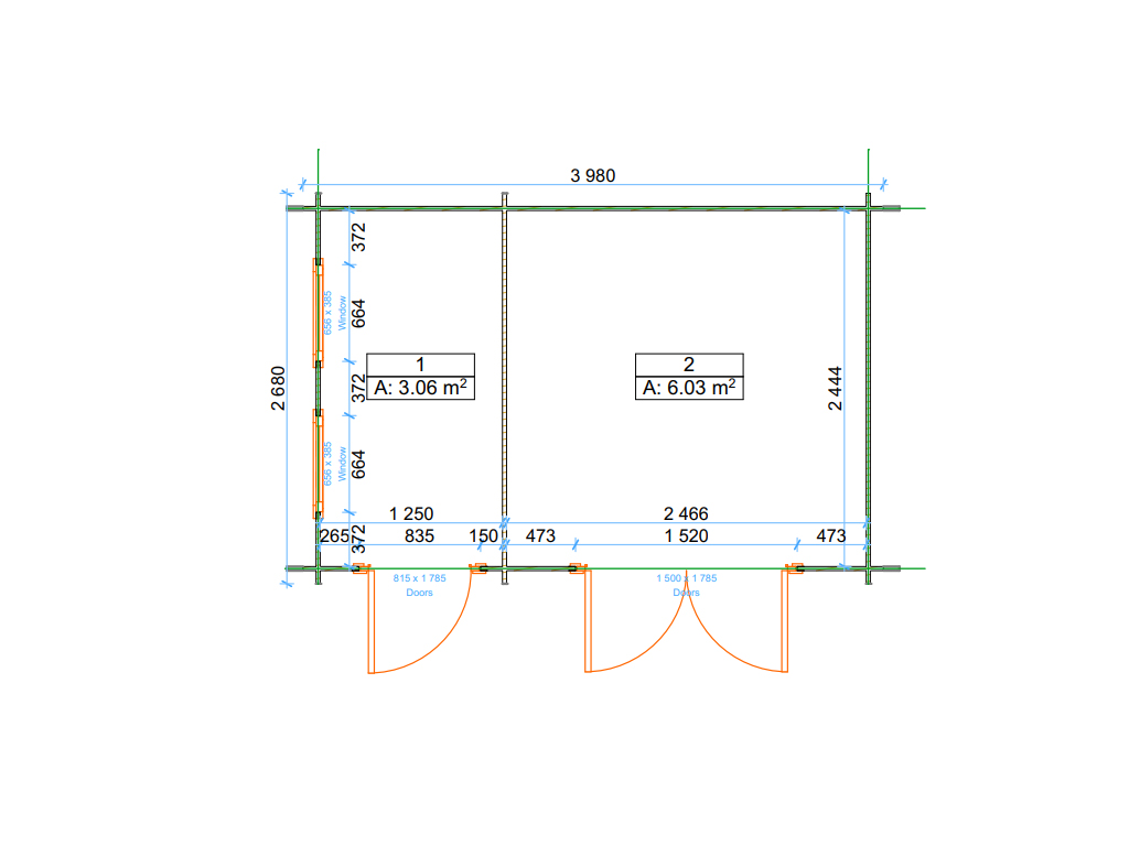 Dit tuinhuis wordt geleverd met de volgende ramen: 2 ramen.