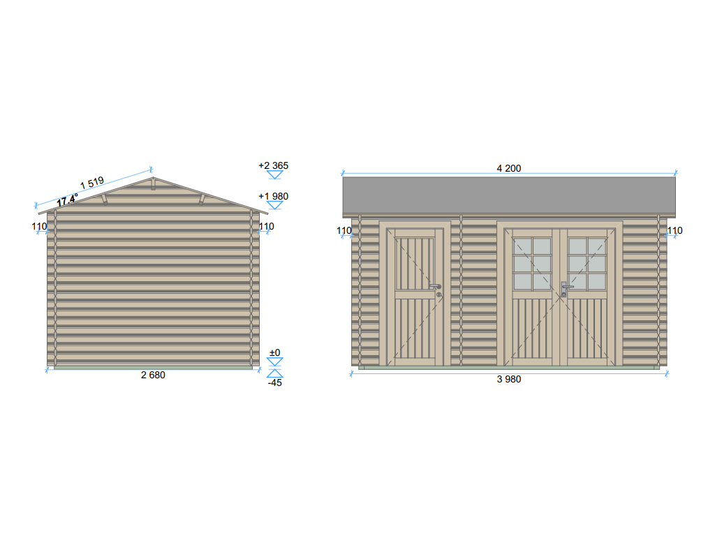 | Buitenmaten met dakoverstek - Breedte (cm): | 420 cm |