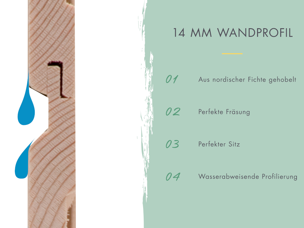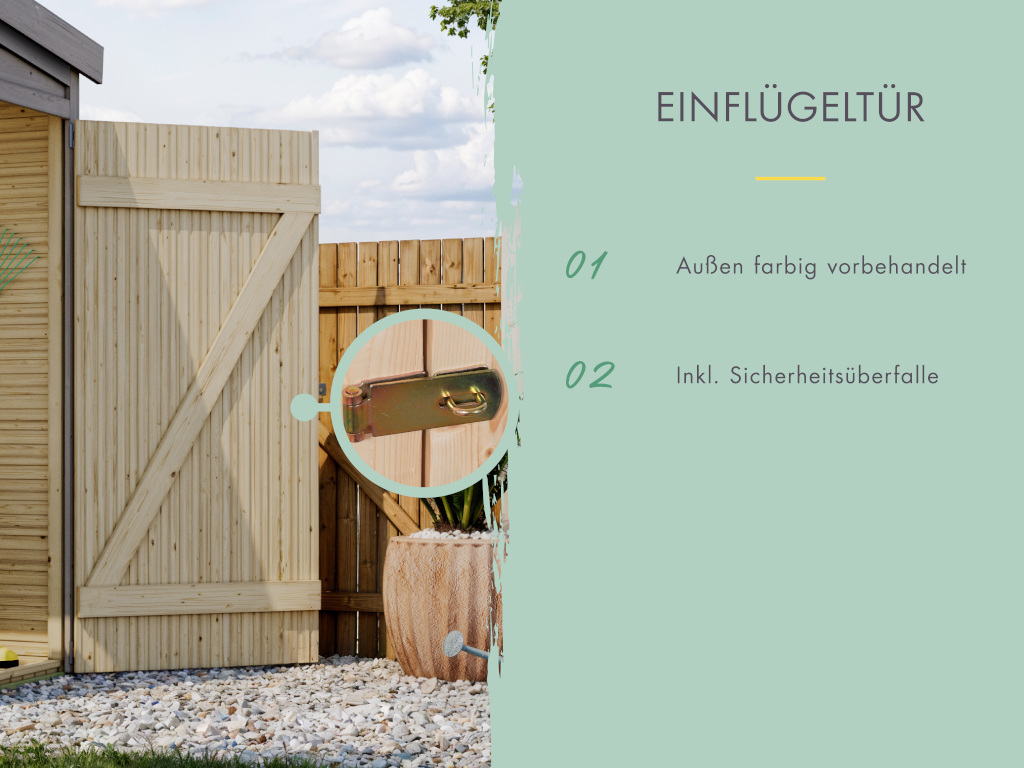 Dit hoogwaardig afgewerkte tuinhuis is gemaakt van geselecteerd eersteklas vurenhout. Vuren is bijzonder duurzaam en robuust en zorgt zo voor de nodige stabiliteit. Daarnaast is deze houtsoort licht, eenvoudig te verwerken en zeer elastisch.