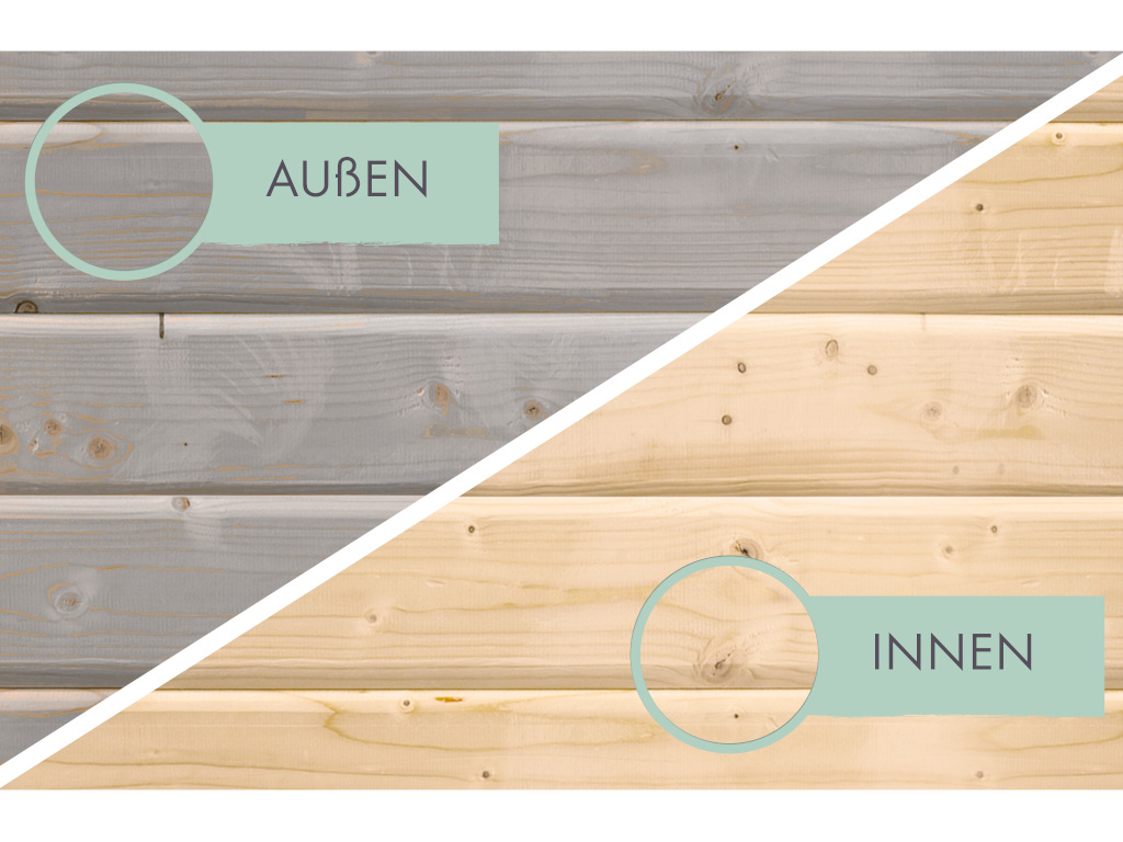 Om de levensduur van het hout te verlengen en het tuinhuis een fraai uiterlijk te geven, is het oppervlak van het tuinhuis gelakt. De houtlak verzegelt de buitenwanden en beschermt ze vanaf het begin tegen weersinvloeden en houtaantasters.