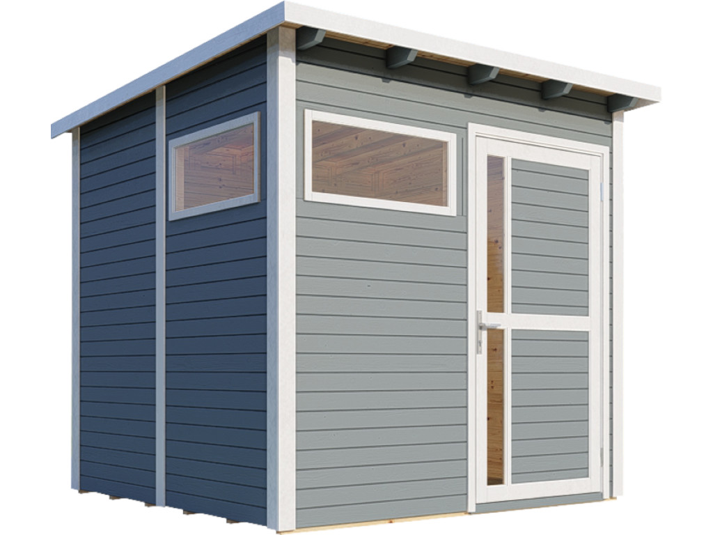 Moderne Punta-2-ontwerp-tuinhuisjes met hoogwaardige afwerking. Flexibel op te bouwen dankzij het modulaire constructieprincipe. Dankzij het flexibele modulaire elementsysteem kunnen deuren en raam-elementen op veel manieren worden ingebouwd.