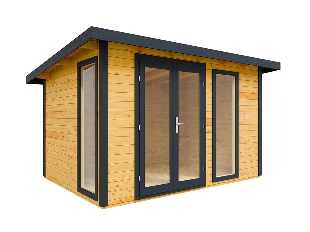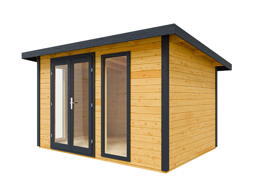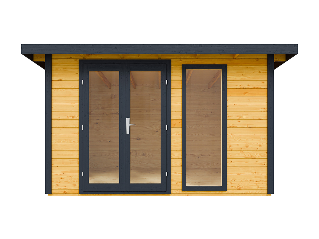 Het tuinhuis kenmerkt zich door zijn nauwkeurig bewerkte 28 mm dikke wandplanken van vurenhout. In deze variant wordt het tuinhuis al in de kleur eiken/antraciet geleverd. Let op de volgende productverbonden aanwijzingen betreffende de kleur: De wanden en dakspanten zijn aan beide zijden in de kleur eiken behandeld. De dakplanken worden aan beide zijden onbehandeld geleverd. - Modern lessenaarsdak