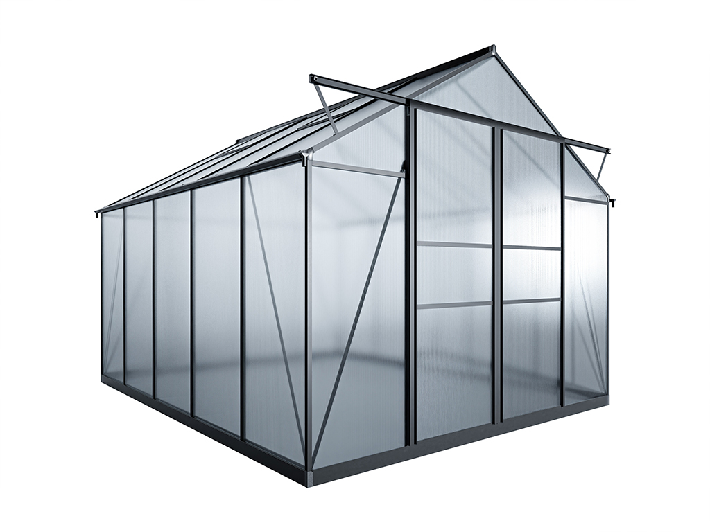 De wanden van kanaalplaten van de tuinkas zijn gemaakt van UV-gestabiliseerd polycarbonaat, zijn onbreekbaar en het licht melkachtige oppervlak breekt het licht, zodat meestal geen extra schaduwdoek nodig is.