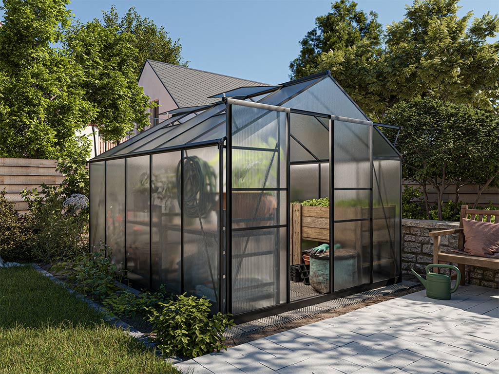Tuinkas aluminium Perseus zwart polycarbonaat platen 4 mm Tuinkas aluminium Perseus zwart polycarbonaat...