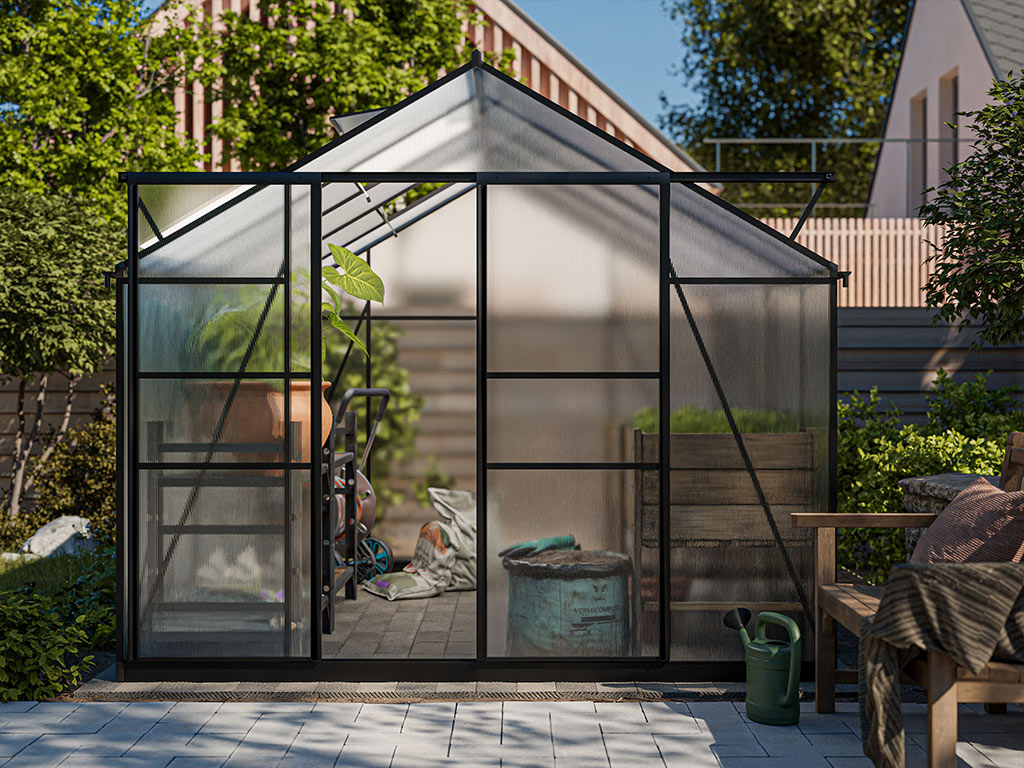 Klantenbeoordelingen voor "Tuinkas aluminium Athena zwart met polycarbonaat platen 4 mm"