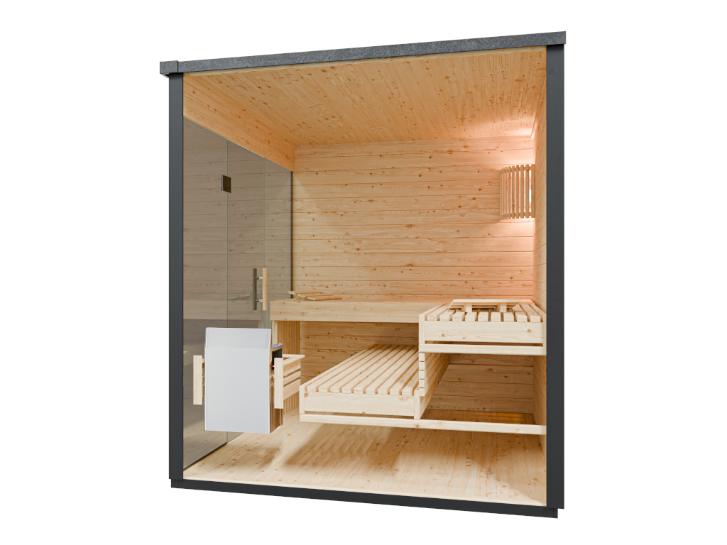 Tuinsauna Lilly zwart SPARSET 9 kW kachel en externe bediening.