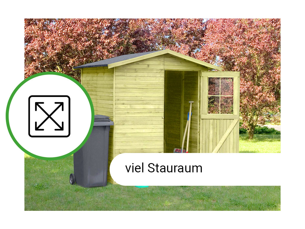 De enkele deur (B 71 x H 175,5 cm) met kunststof venster biedt voldoende ruimte om grote voorwerpen op te bergen. - Incl. vloer en dakleer