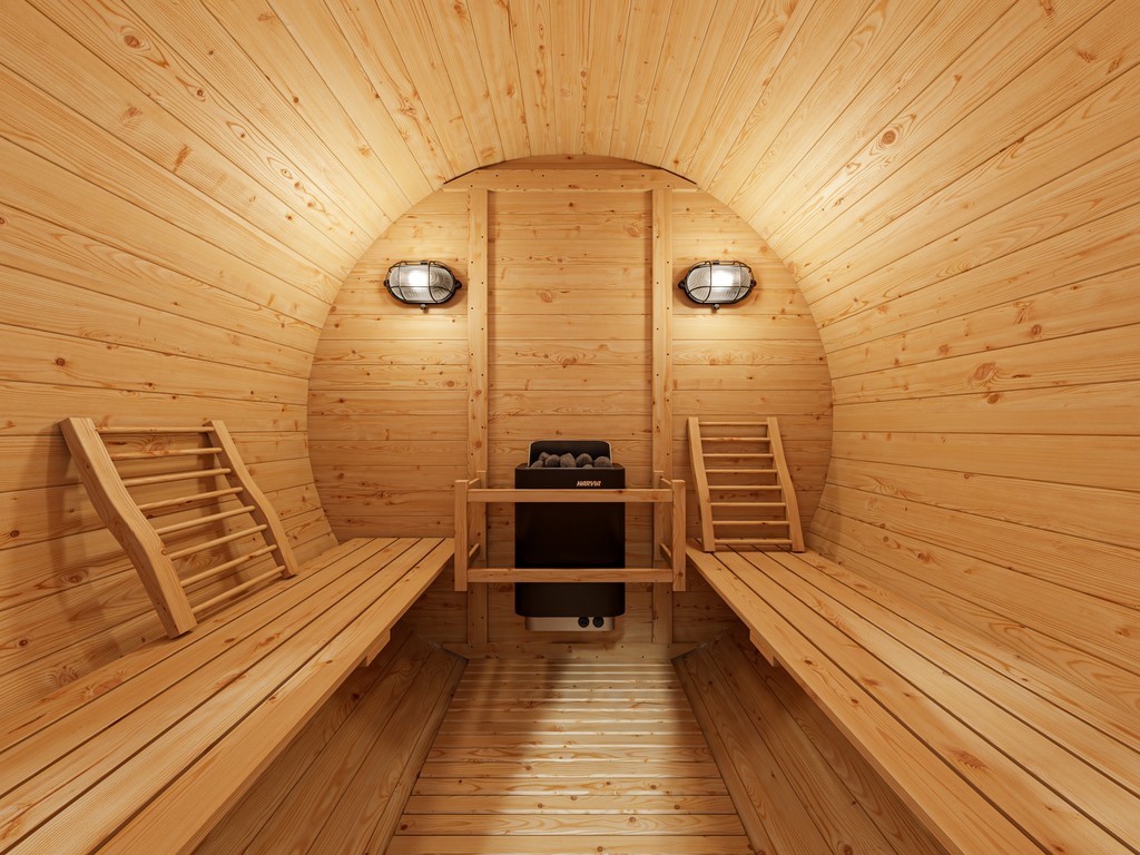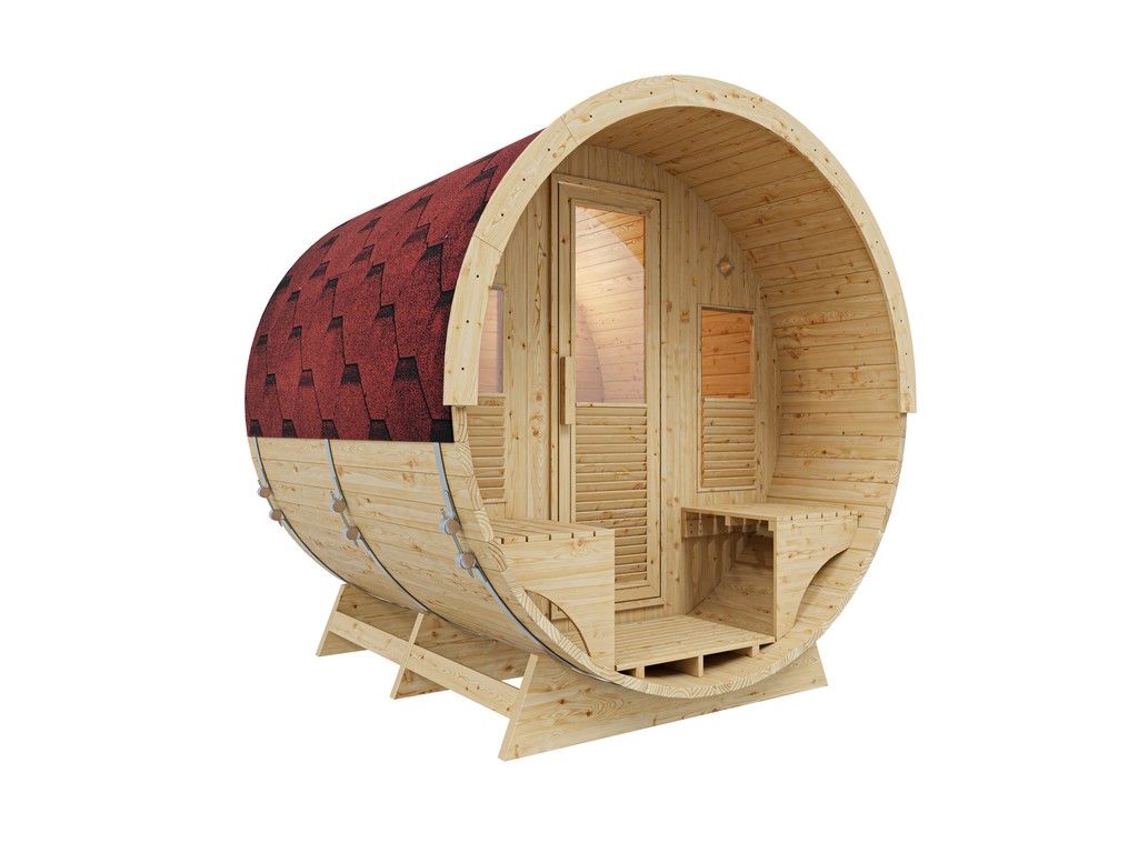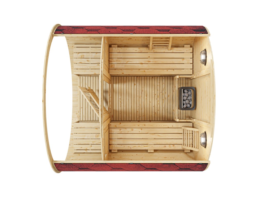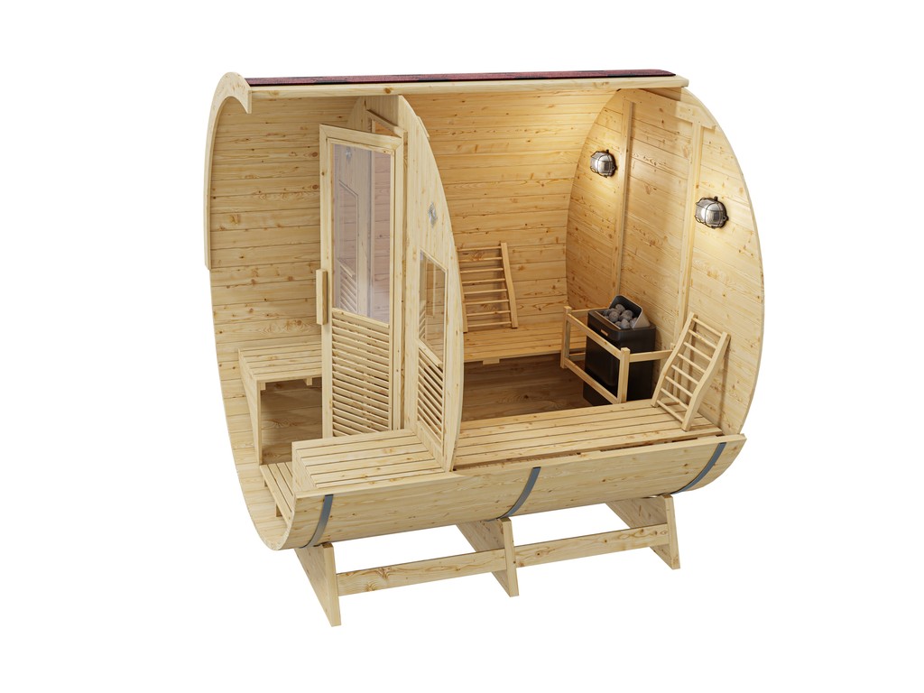 Vatsauna Augusta sparrenhout met 8 kW kachel en accessoires