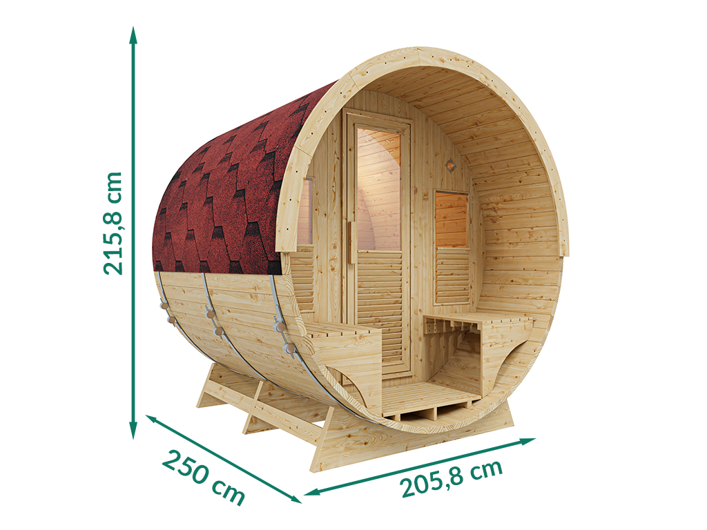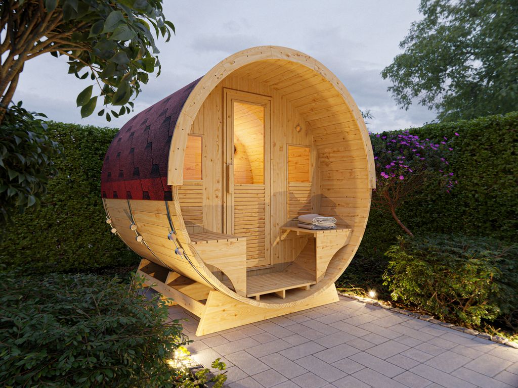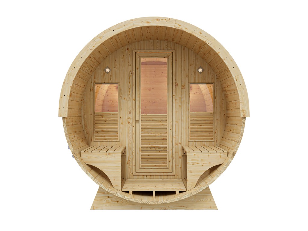| Leveringsomvang: | incl. 8 kW-oven, 20 kg saunastenen, zandloper, dubbele thermometer, opgietemmer, schep, lamp en rugleuning |