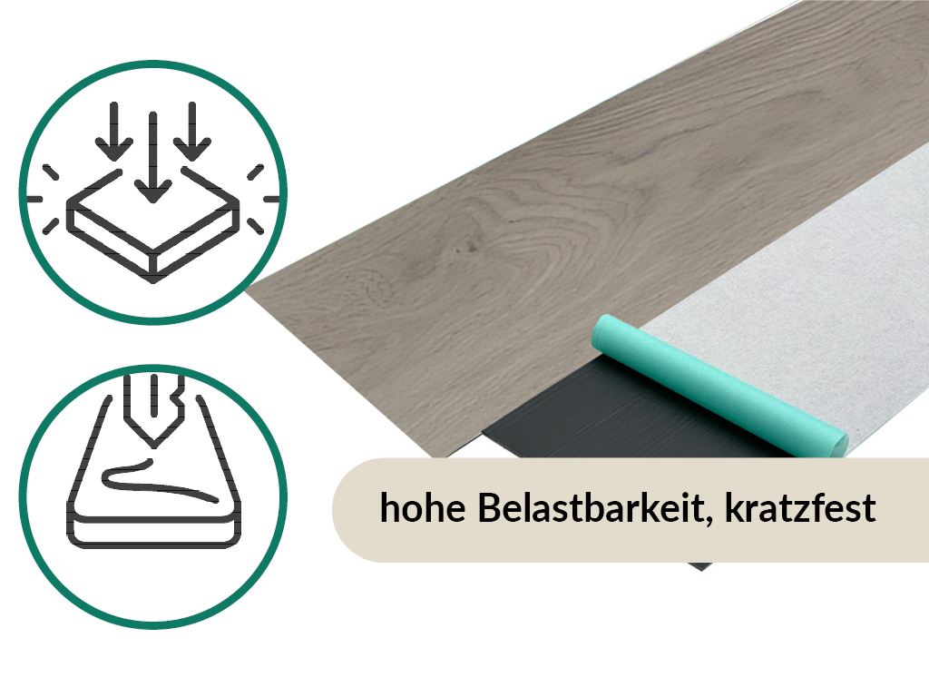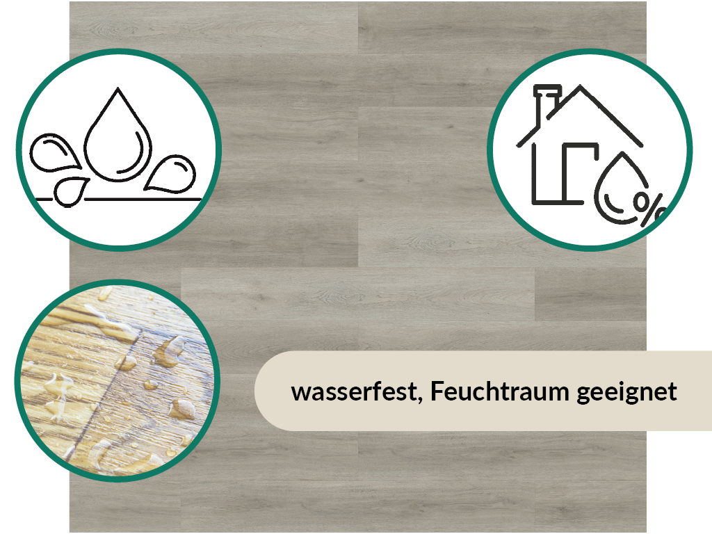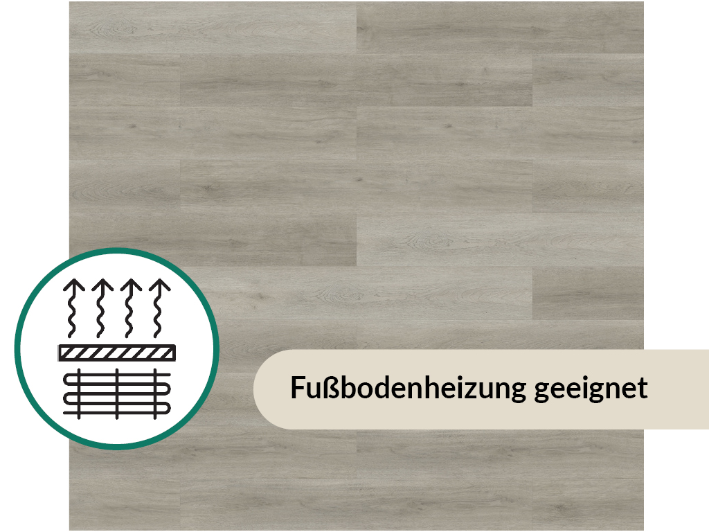 Dit product is niet goedgekeurd voor gebruik in vochtige ruimtes zoals keuken en badkamer. De vinylvloer is geschikt om op warmwatervloerverwarming te leggen. De geïntegreerde contactgeluidisolatie vangt een deel van het loop- en contactgeluid op en gaat zo hinderlijk geluid bij het lopen tegen - ook voor de buren.