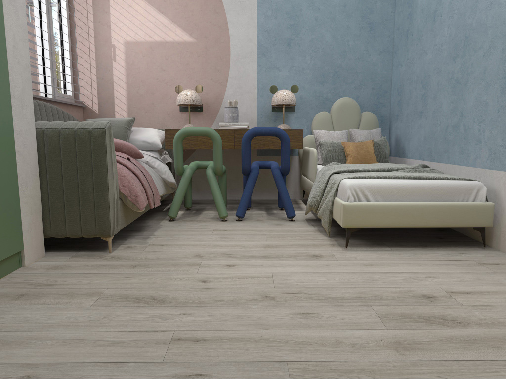 Deze vinylvloer met een slijtlaag van 0,55 mm is ideaal voor zwaardere belastingen, die in de woonkamer, kinderkamer of gang gebruikelijk zijn.