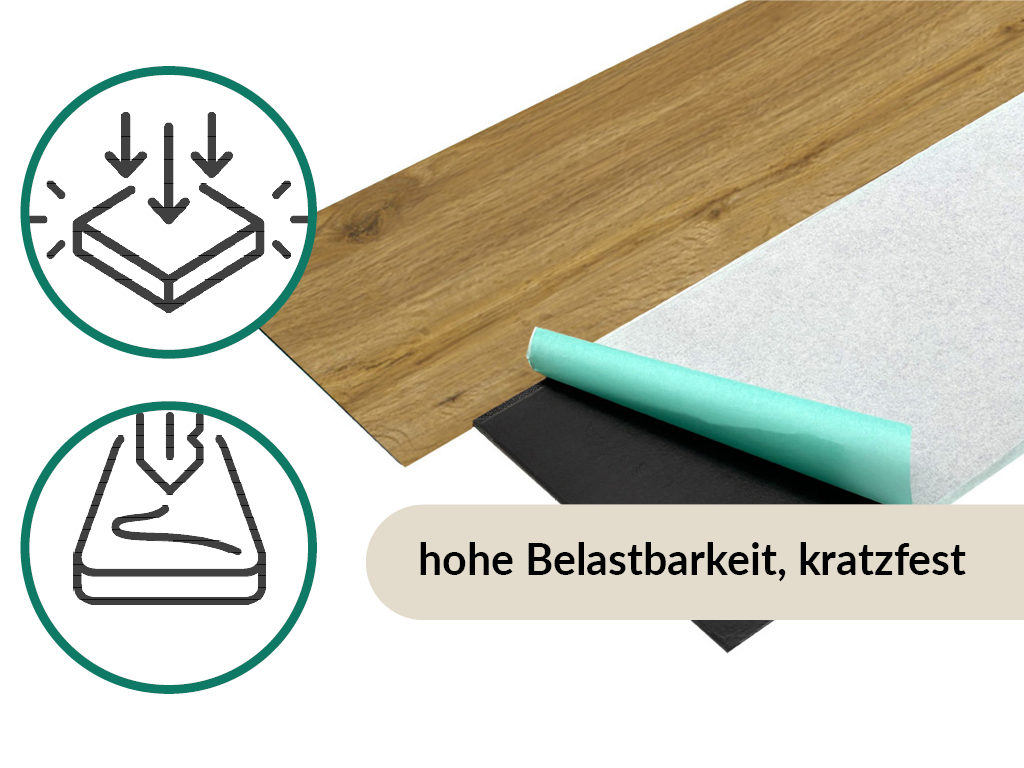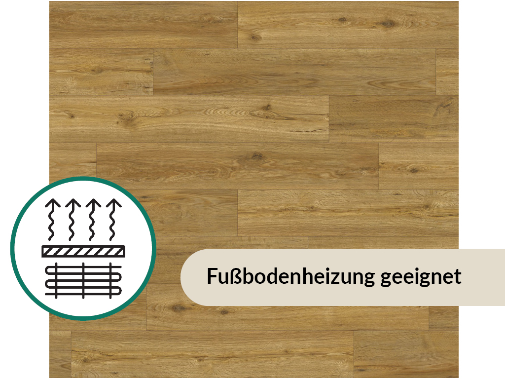 Dit product is niet goedgekeurd voor gebruik in vochtige ruimtes zoals keuken en badkamer. De vinylvloer is geschikt om op warmwatervloerverwarming te leggen. De geïntegreerde contactgeluidisolatie vangt een deel van het loop- en contactgeluid op en gaat zo hinderlijk geluid bij het lopen tegen - ook voor de buren.