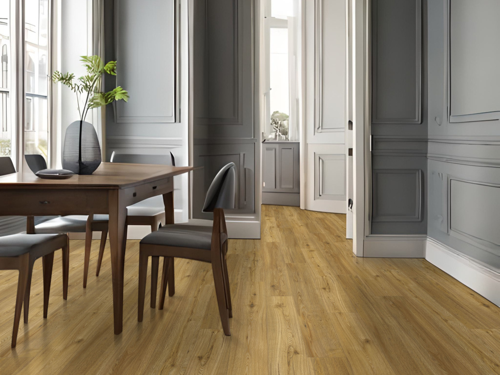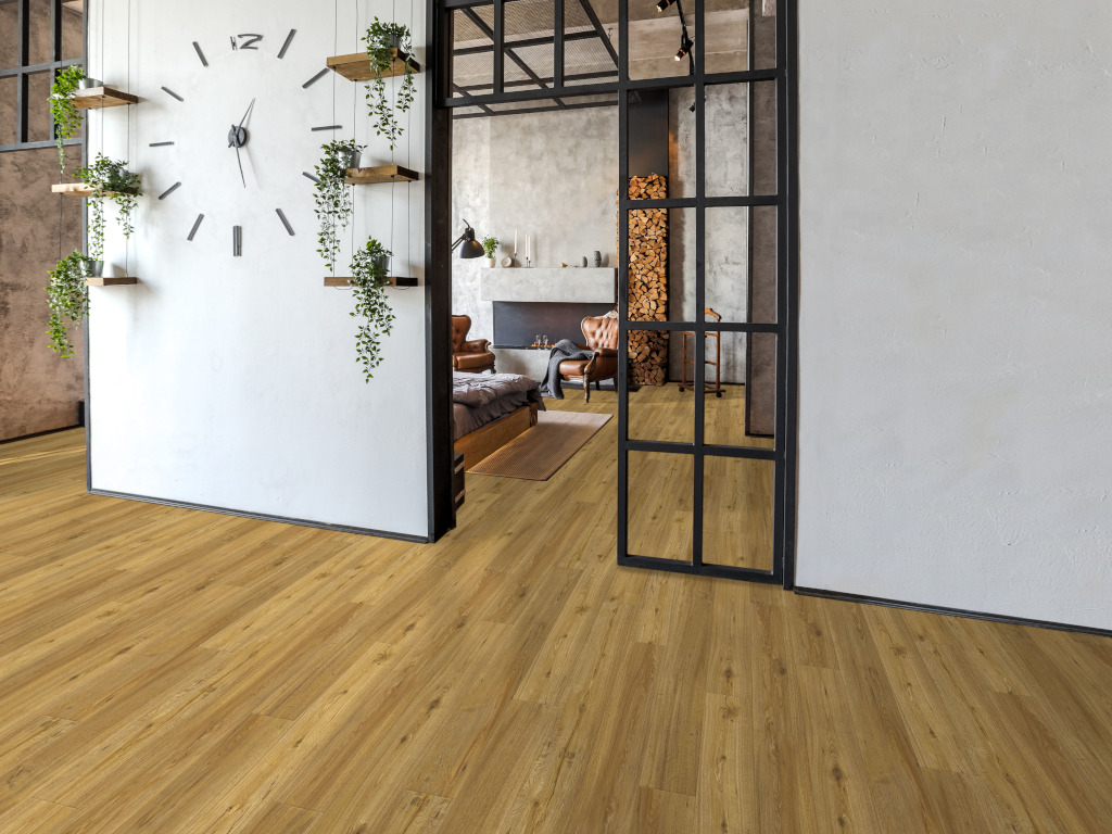 Deze vinylvloer met een slijtlaag van 0,55 mm is ideaal voor zwaardere belastingen, die in de woonkamer, kinderkamer of gang gebruikelijk zijn.