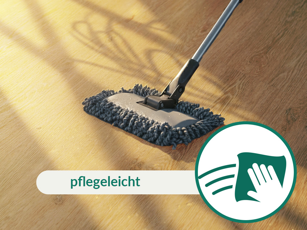 Optimale bescherming tegen vocht is een bijzonder kenmerk van dit hoogwaardige product. Het is daarom ideaal voor installatie in vochtige ruimtes. Dankzij de goede thermische geleidbaarheid kan de vinylvloer over een warmwatervloerverwarming worden geïnstalleerd.