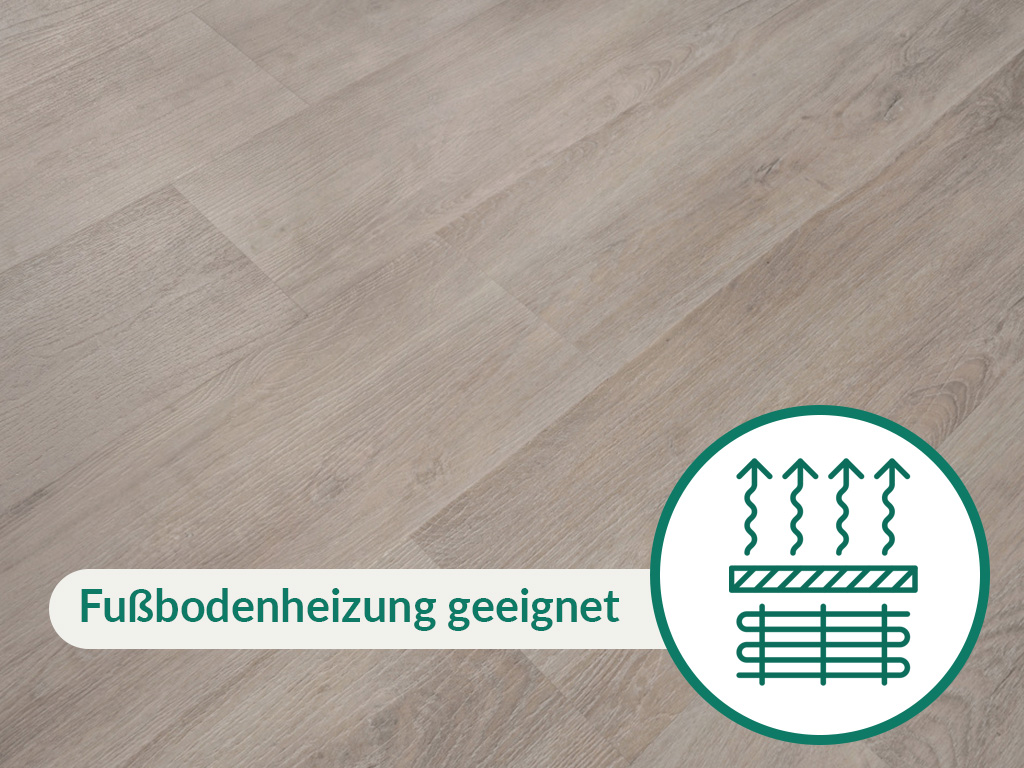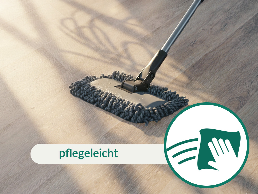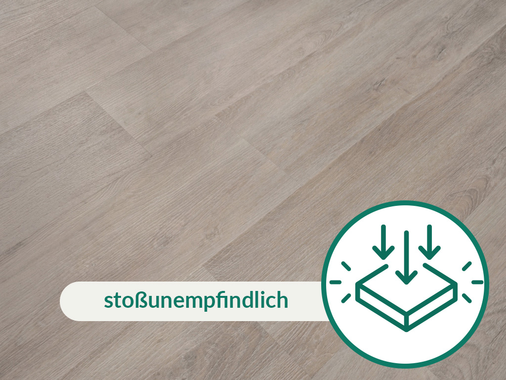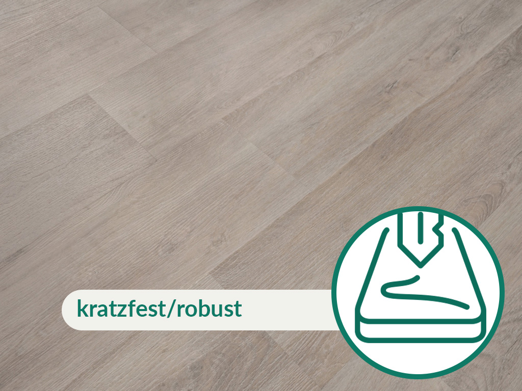Met een slijtlaag van 0,3 mm is de vloer goed voorbereid op intensief gebruik in de woonkamer, kinderkamer of gang. Het komt overeen met de gebruiksklasse 22 en is dus geschikt voor matig gebruikte kamers in privéruimtes zoals keukens, slaapkamers, badkamers of woonkamers. Met commerciële gebruiksklasse 31 is hij net zo geschikt voor licht gebruik als in kleine kantoren of vergaderruimtes.