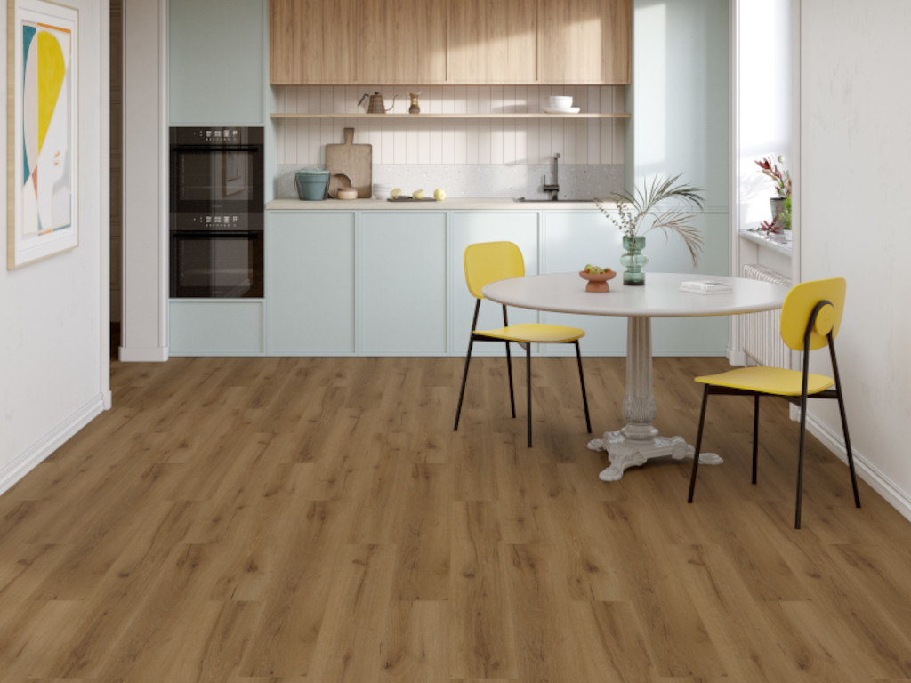 Zelfligende vloer, direct beloopbaar, 100% waterbestendig, 1219,2 x 228,6 x 5/0,55 mm