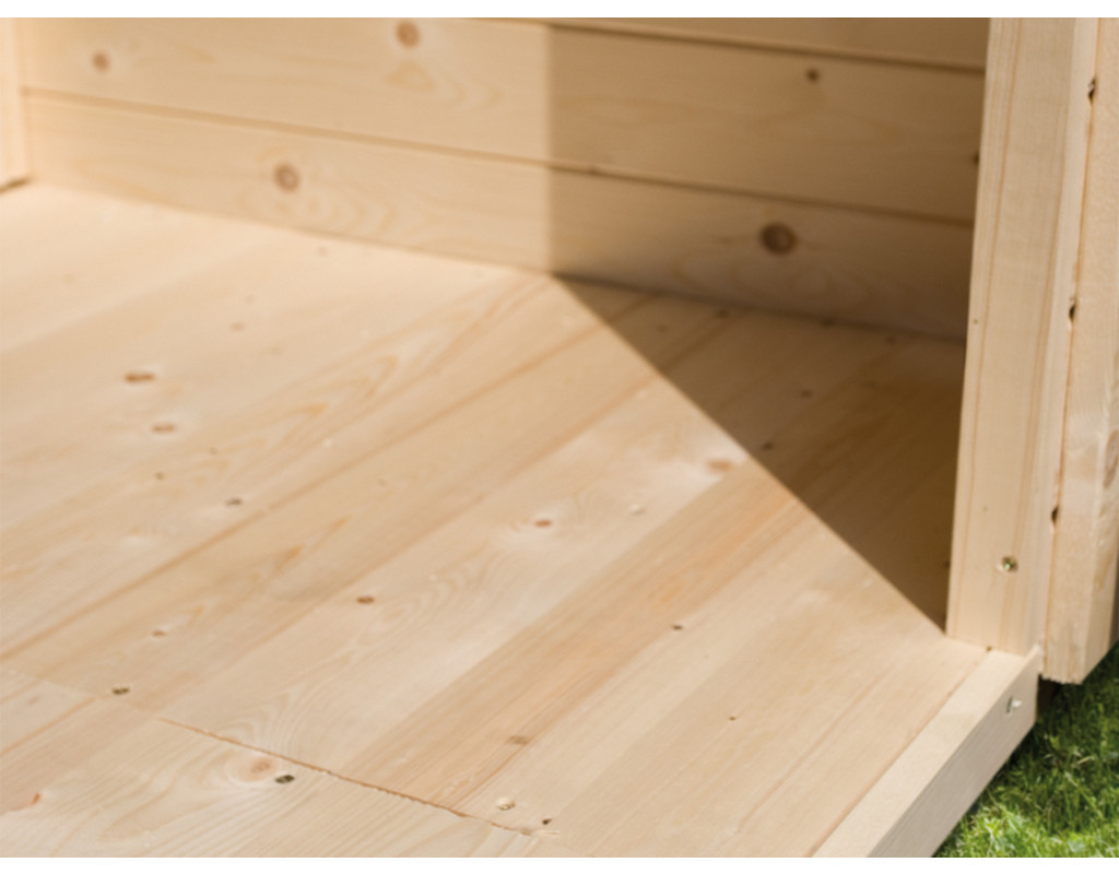 B x D: 427 x 274 cm, 16 mm dik massief hout, incl. 40 x 60 mm kdi ondervloer