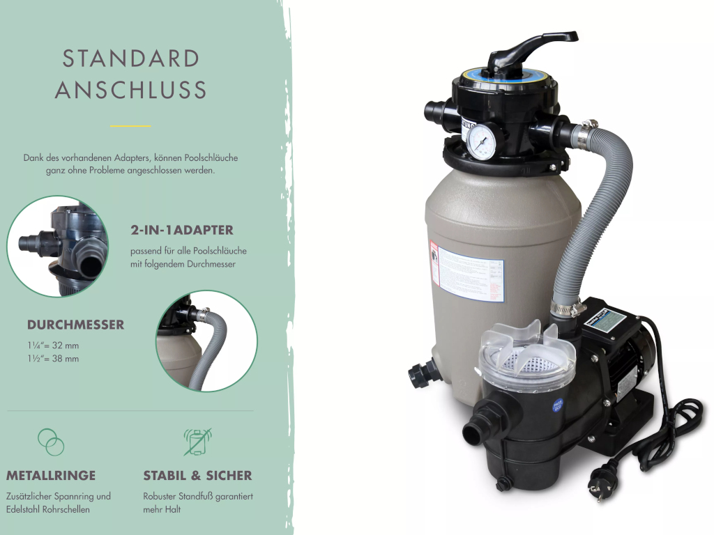 De levering omvat: houten opzetzwembad Modell 3, incl. zwembadtrap, zwembadfolie, beschermvlies, terras en filterinstallatie.