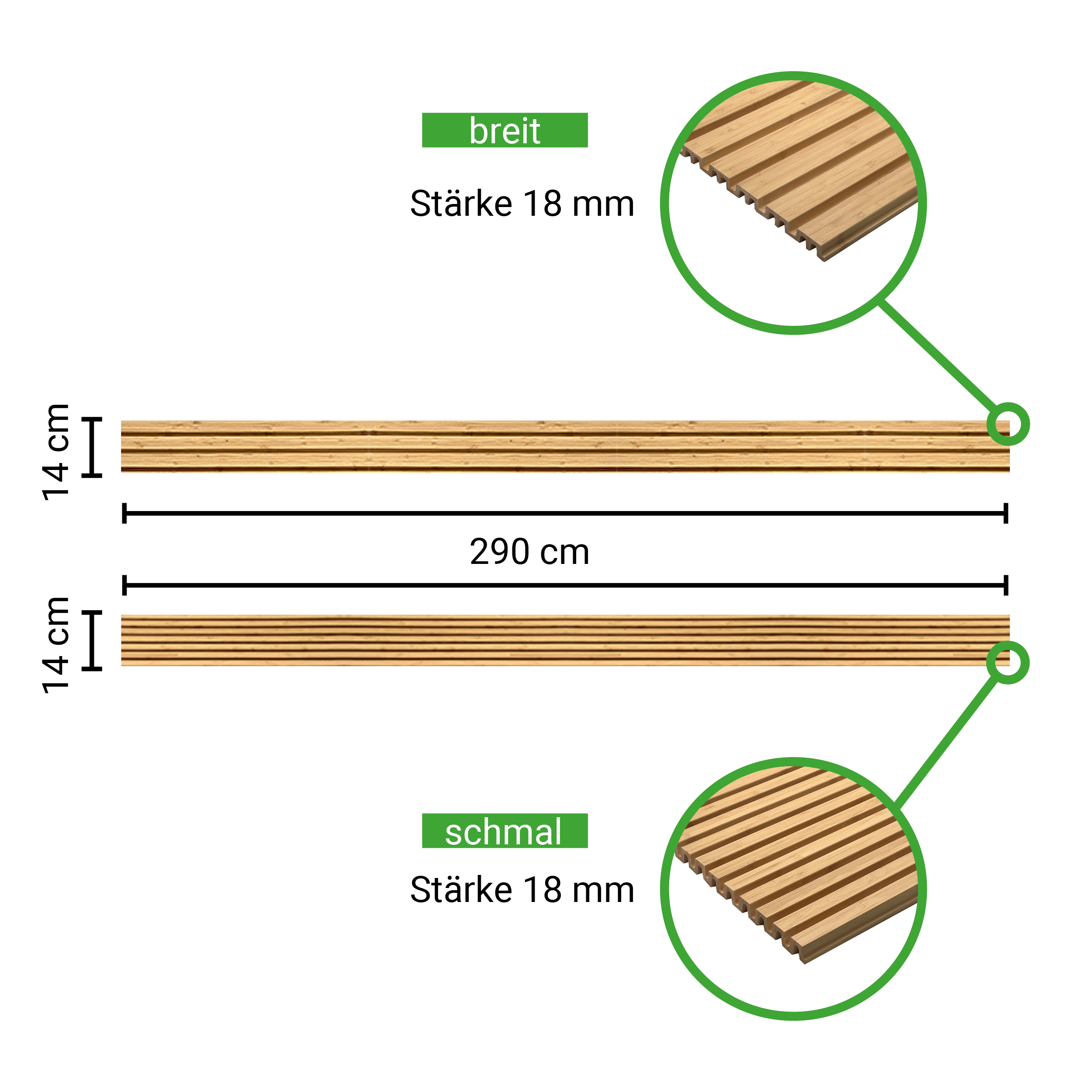 Dikte/breedte 18 x 140 mm, lengte 2,9 m, glad geschaafd