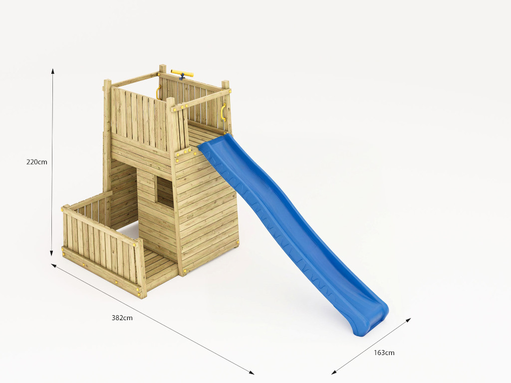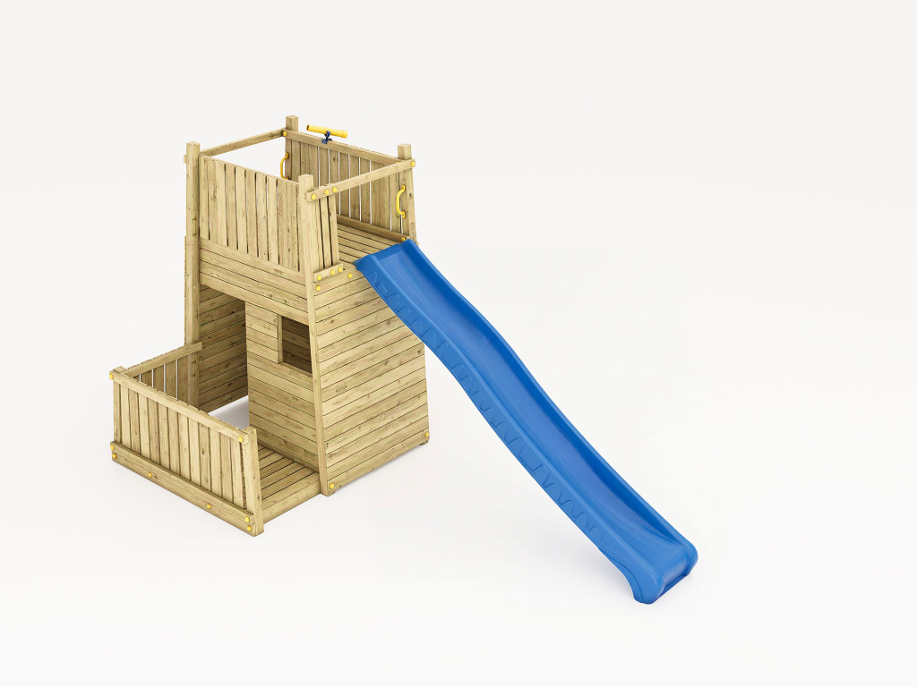 Materiaal: Hout, Wichtelburg Speeltoren (KDI) met glijbaan, blauw Deze speeltoren draait helemaal om actief spelen. Het verhoogde platform is via verschillende routes te bereiken en biedt volop plezier en spelletjes. Het zou zomaar de centrale ontmoetingsplek voor de kinderen in de buurt kunnen worden. De nokhoogte is 220 cm.