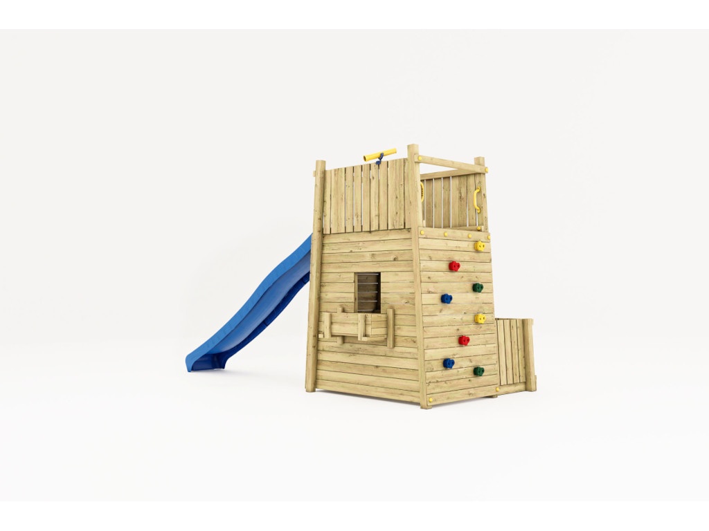 | Leveringsomvang: | Speeltoren, 4 leuningen, 4 grondankers, 8 kleurrijke klimgrepen, 1 speeltelescoop, glijbaan |