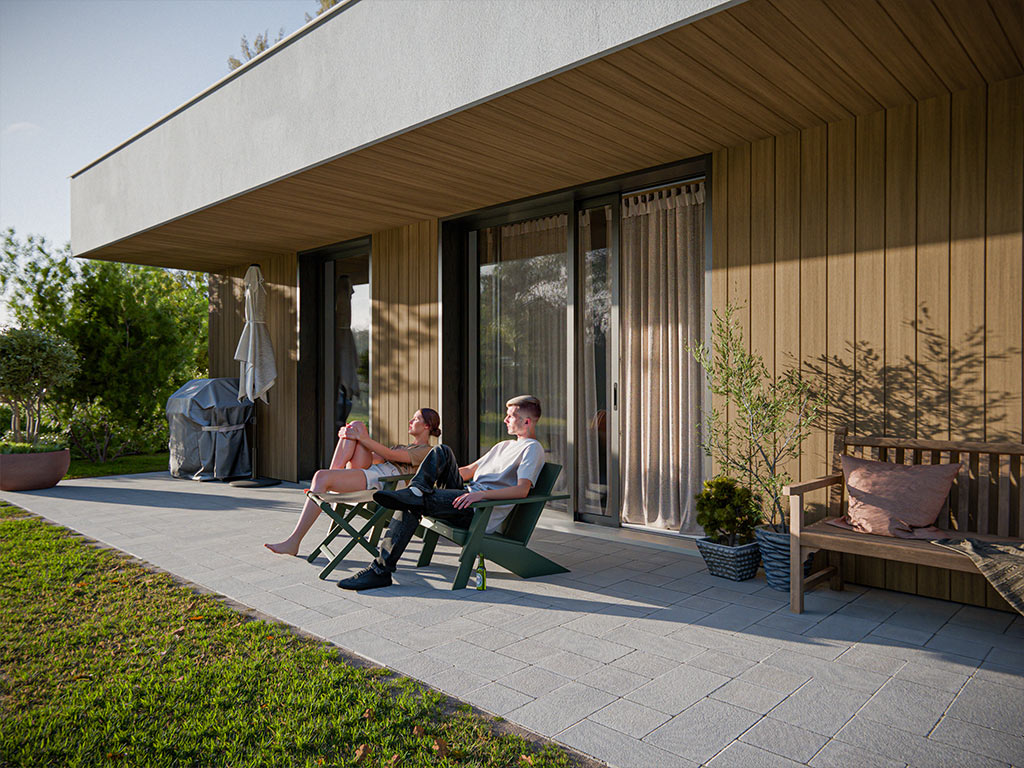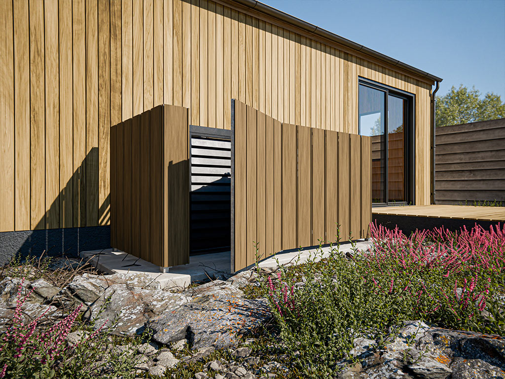 De WPC (Wood Polymer/Plastic Composites) gevels zijn gemaakt van een innovatieve hout-kunststof combinatie en combineren de beste eigenschappen van beide materialen: het gevoel en het natuurlijke houtdesign met de duurzaamheid en robuustheid van kunststof.