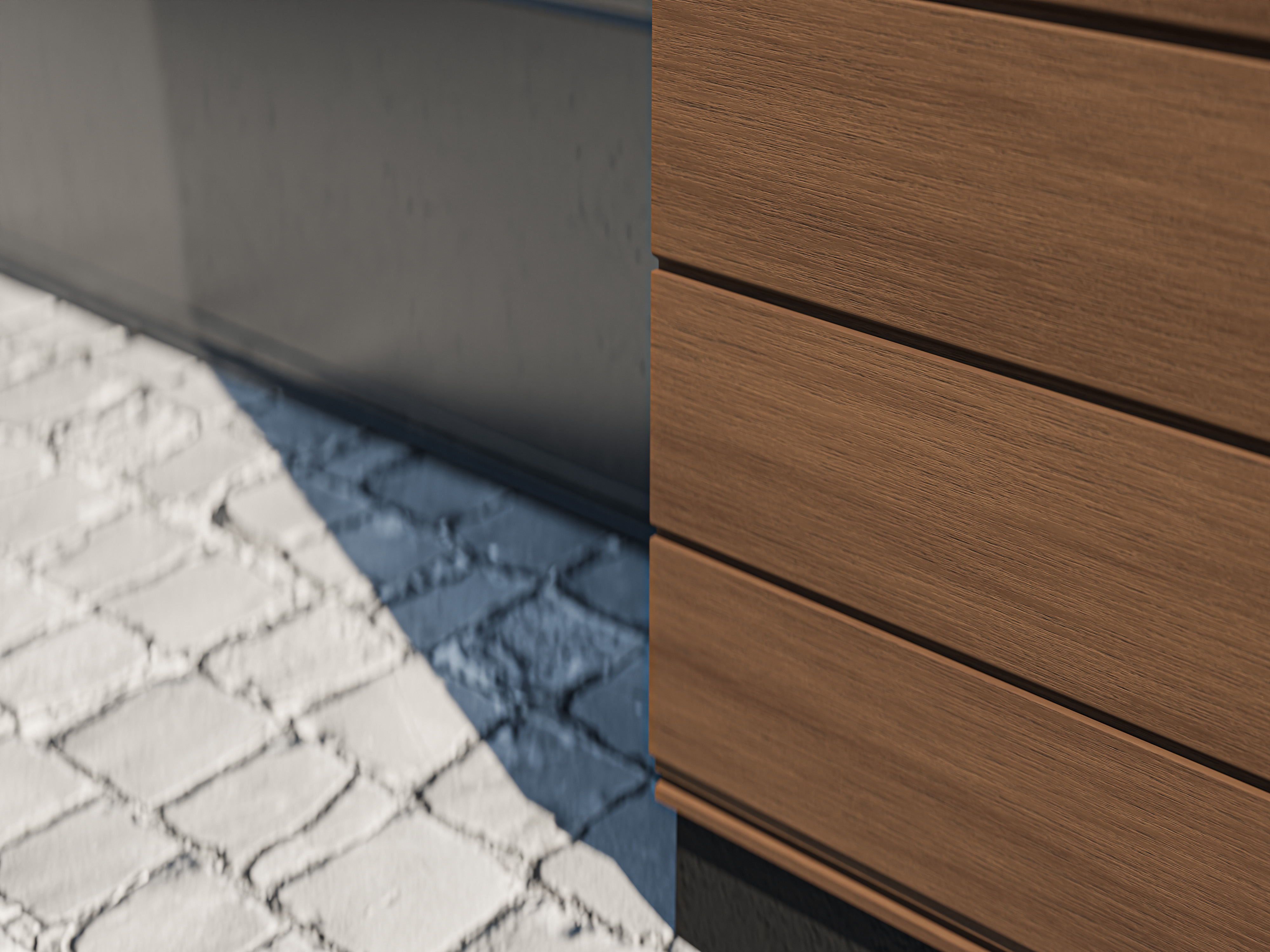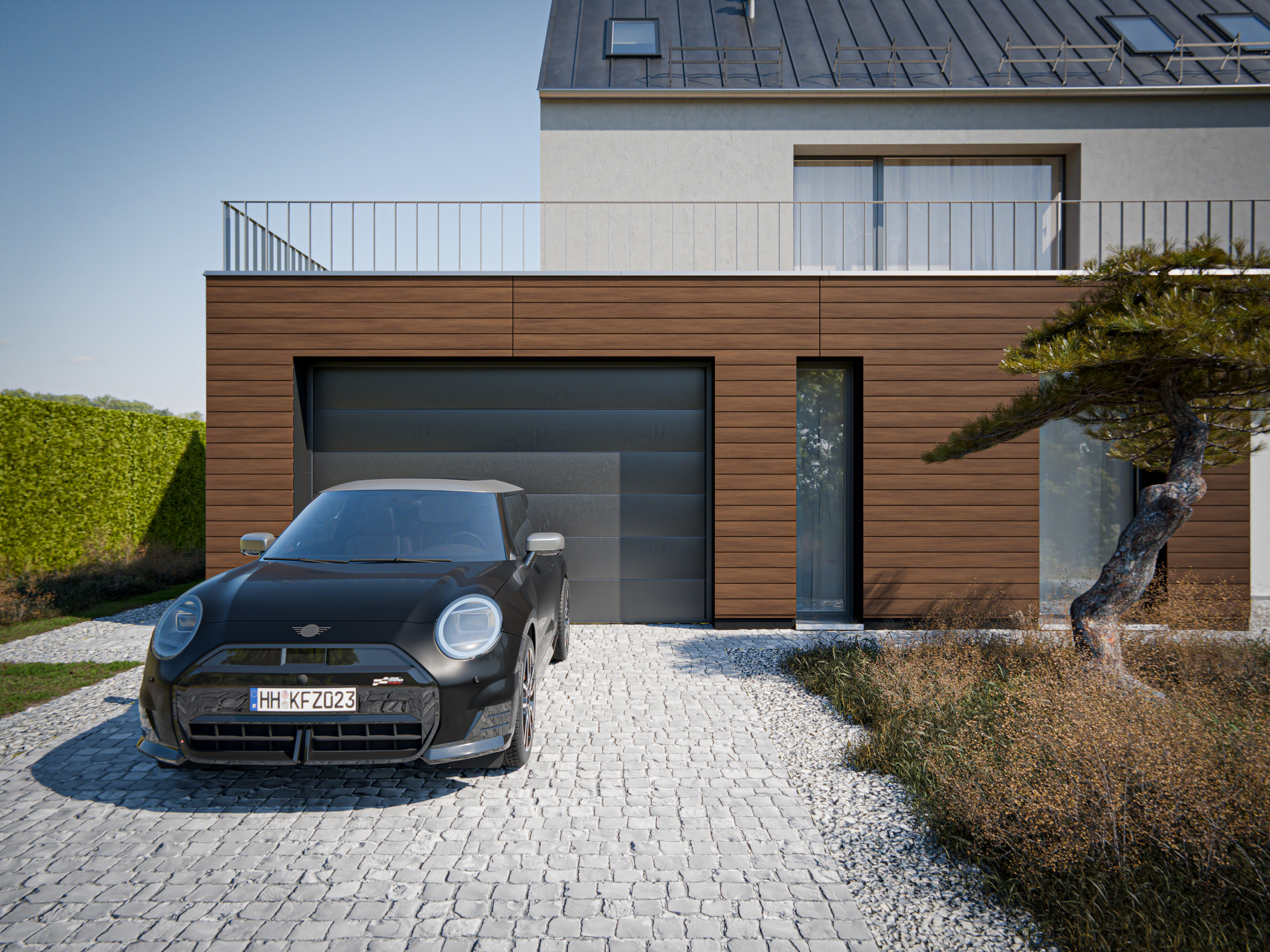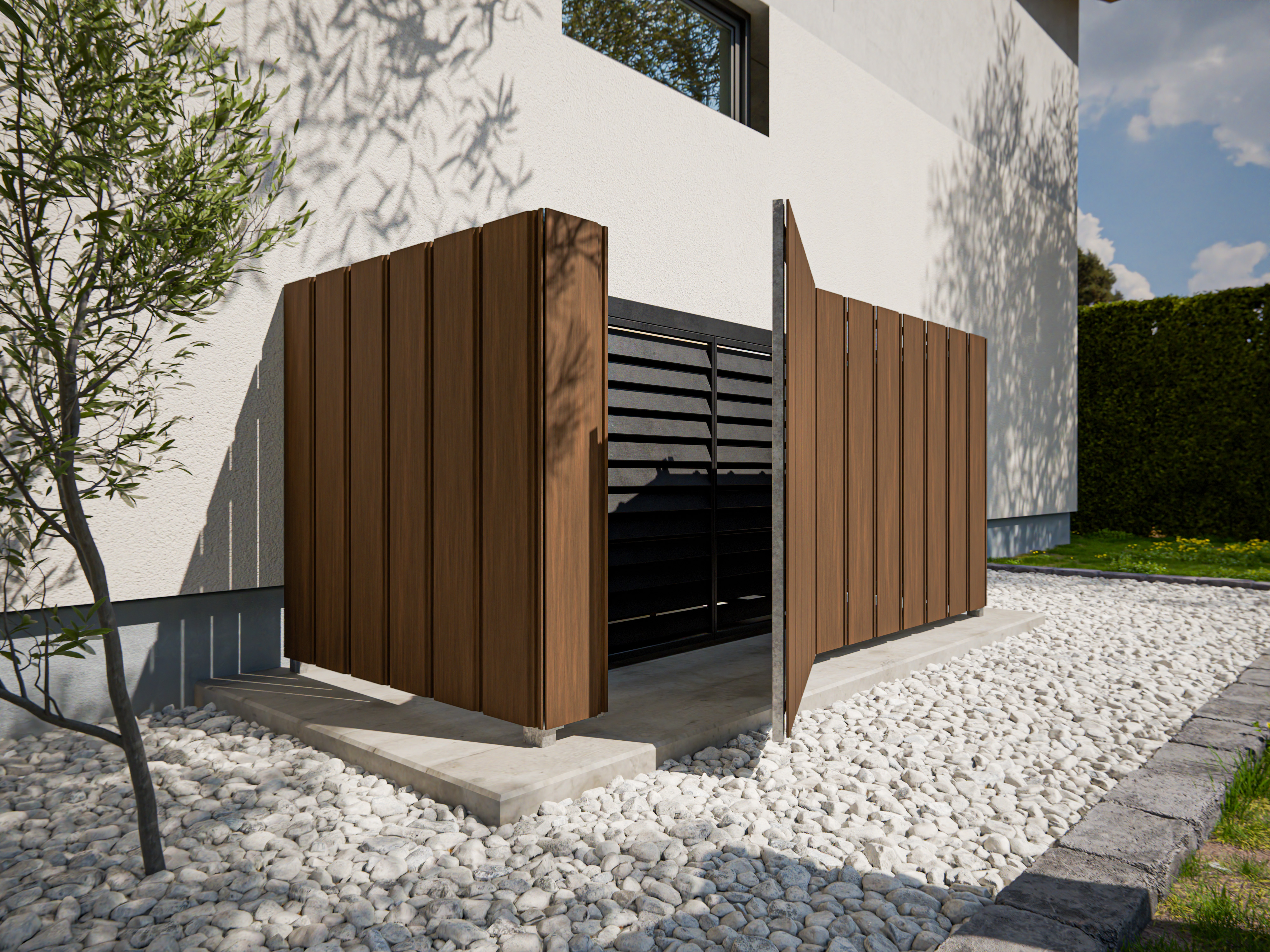 Optisch ziet de gevelbekleding eruit als fijne, individuele ruitprofielen. Het is echter een gesloten bekleding met groef- en tandprofielen. Een unieke look die aangenaam aanvoelend materiaal combineert met intense, willekeurig gecombineerde houtachtige kleuren. Onopvallende bevestiging met schroefkoppen in profielkleur.