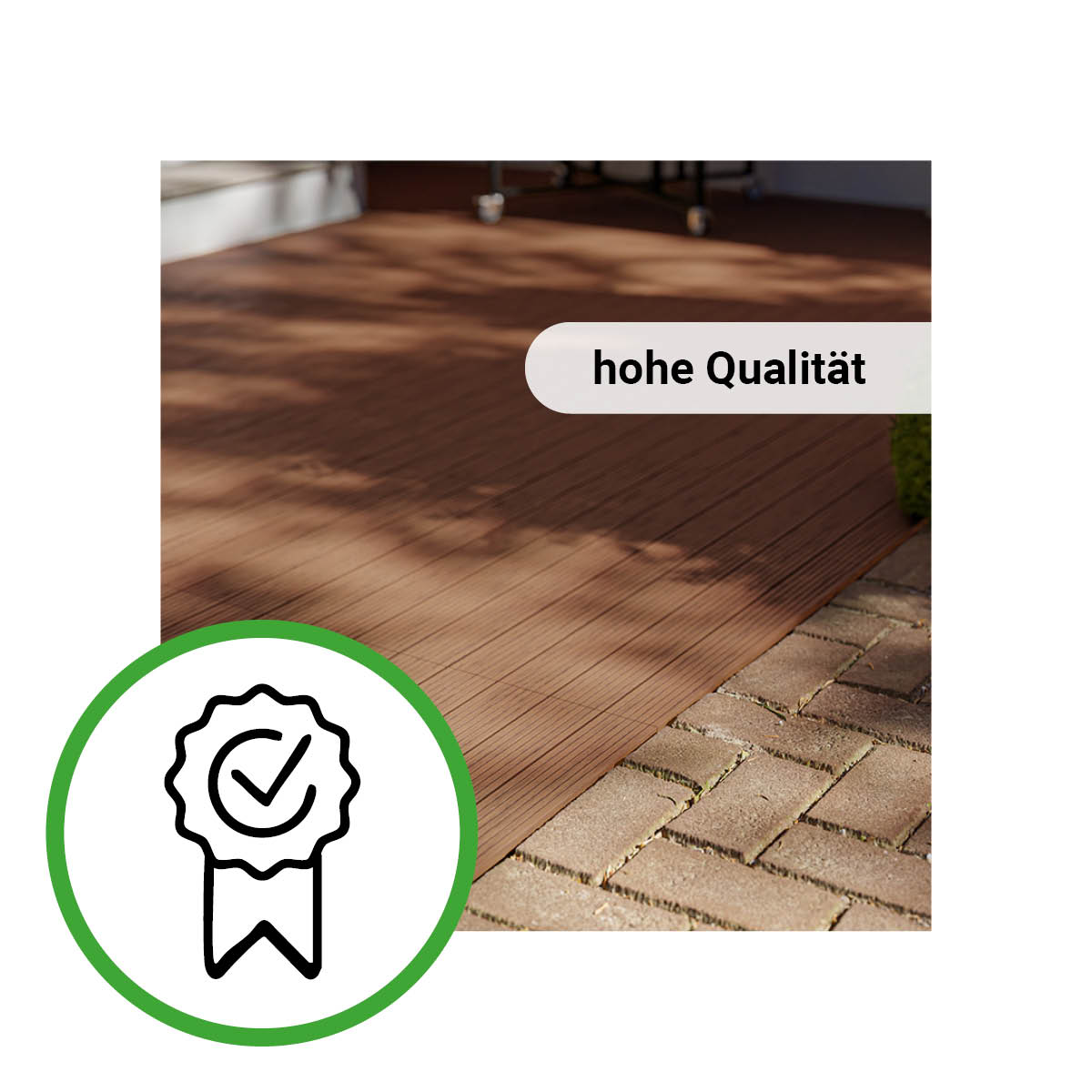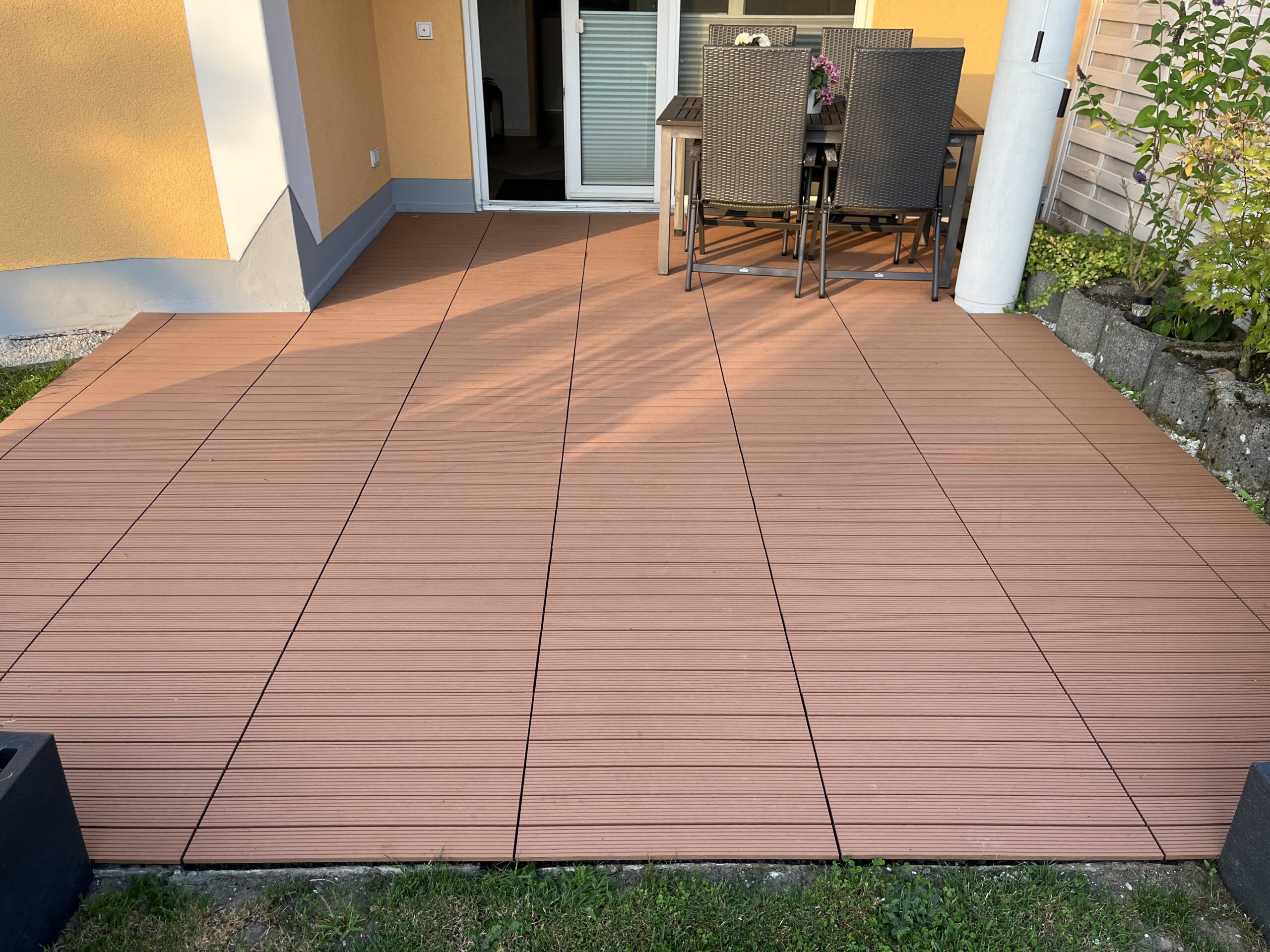 Ook ideaal om op blote voeten op te lopen. De combinatie van hout en kunststof geeft het terras een hoge kwaliteit, zodat je lang plezier beleeft van je terras.