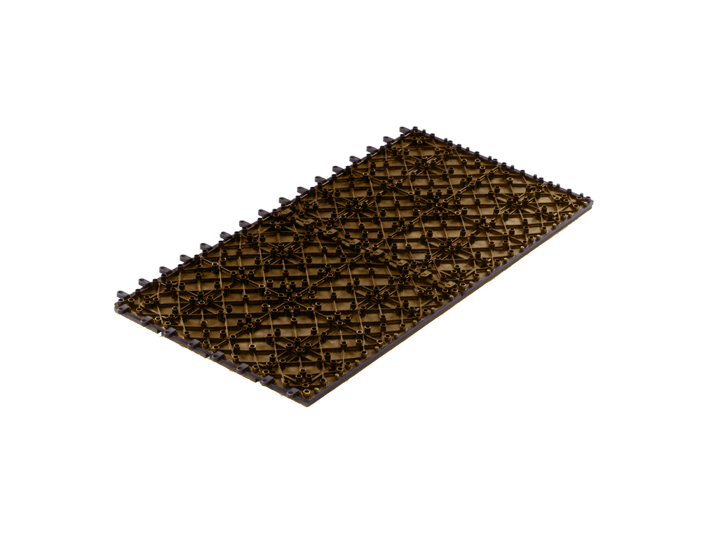 De vloer kan zeer gemakkelijk worden gelegd en weer worden gedemonteerd. De tegels zijn gemonteerd op een kunststof draagrooster en worden eenvoudig in elkaar geschoven.